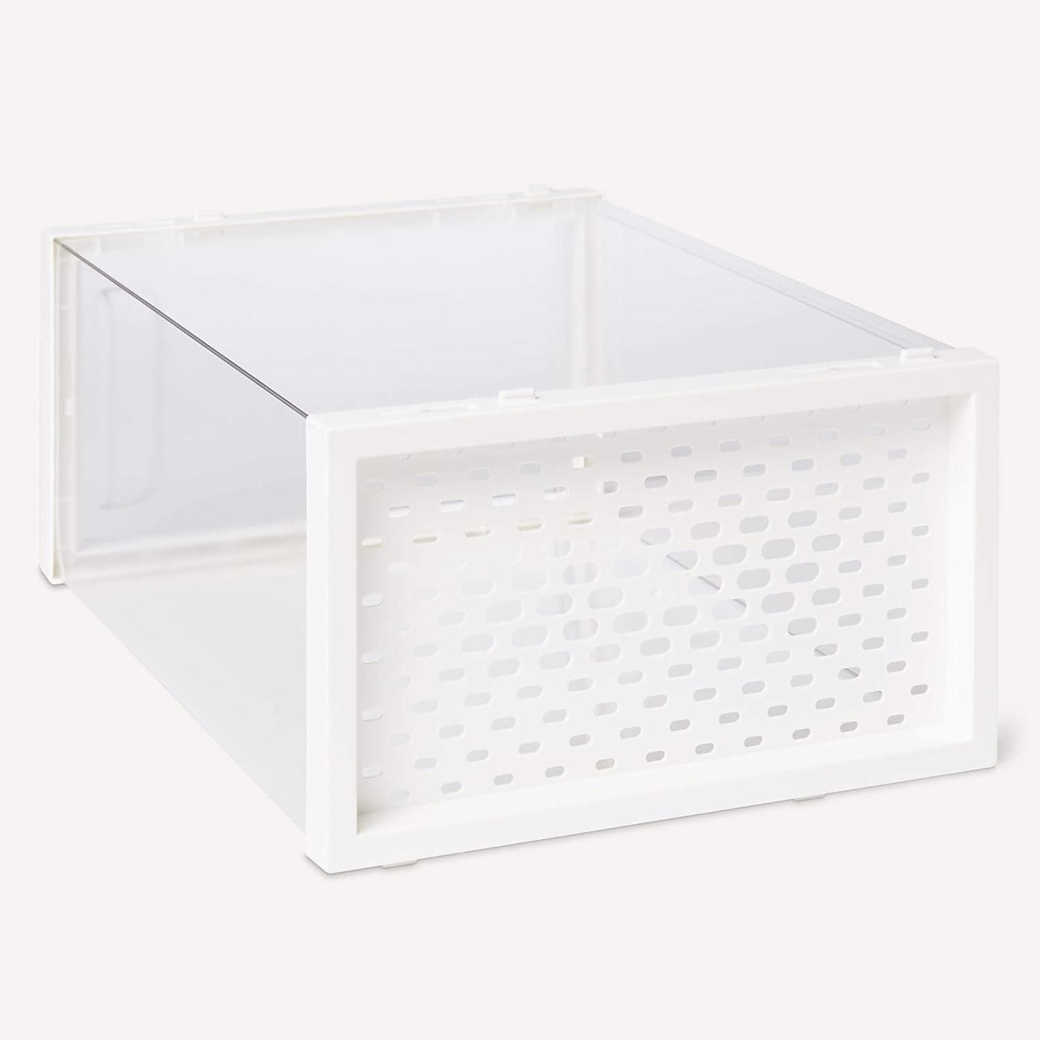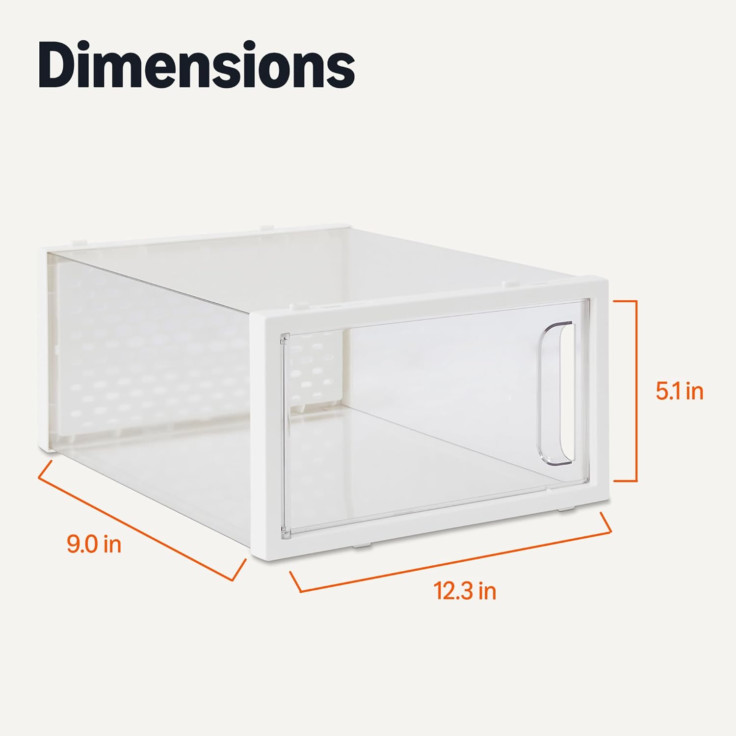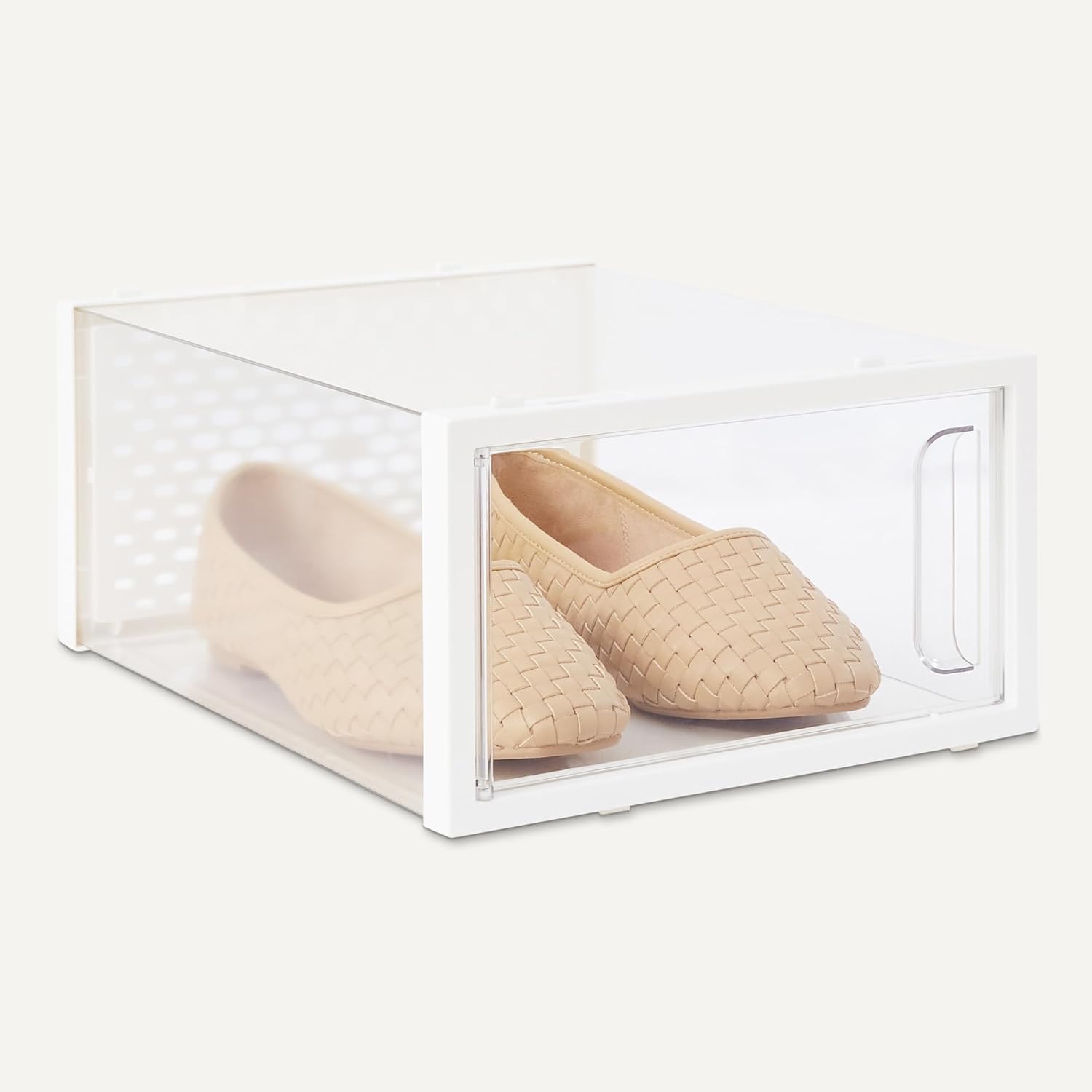 • 12-pack of stackable, interlocking shoe organizer boxes for versatile, space-saving storage — ideal for shoes, clothing, handbags, toys, accessories, and other household essentials