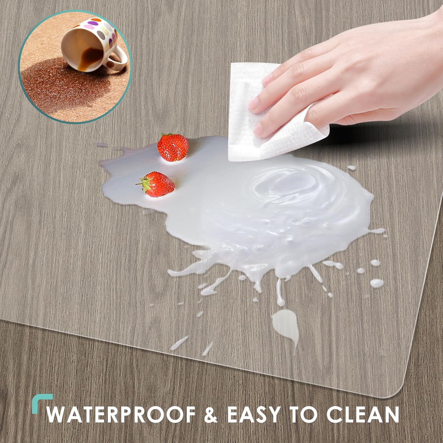 • Waterproof & Easy to Clean : Made from PVC material, this computer gaming chair mat is waterproof, so you don't have to worry about spilled coffee or food scraps falling on the floor. Meanwhile, this office chair floor mat is easy to clean, A quick wipe with a damp cloth is all it takes to maintain its cleanliness.