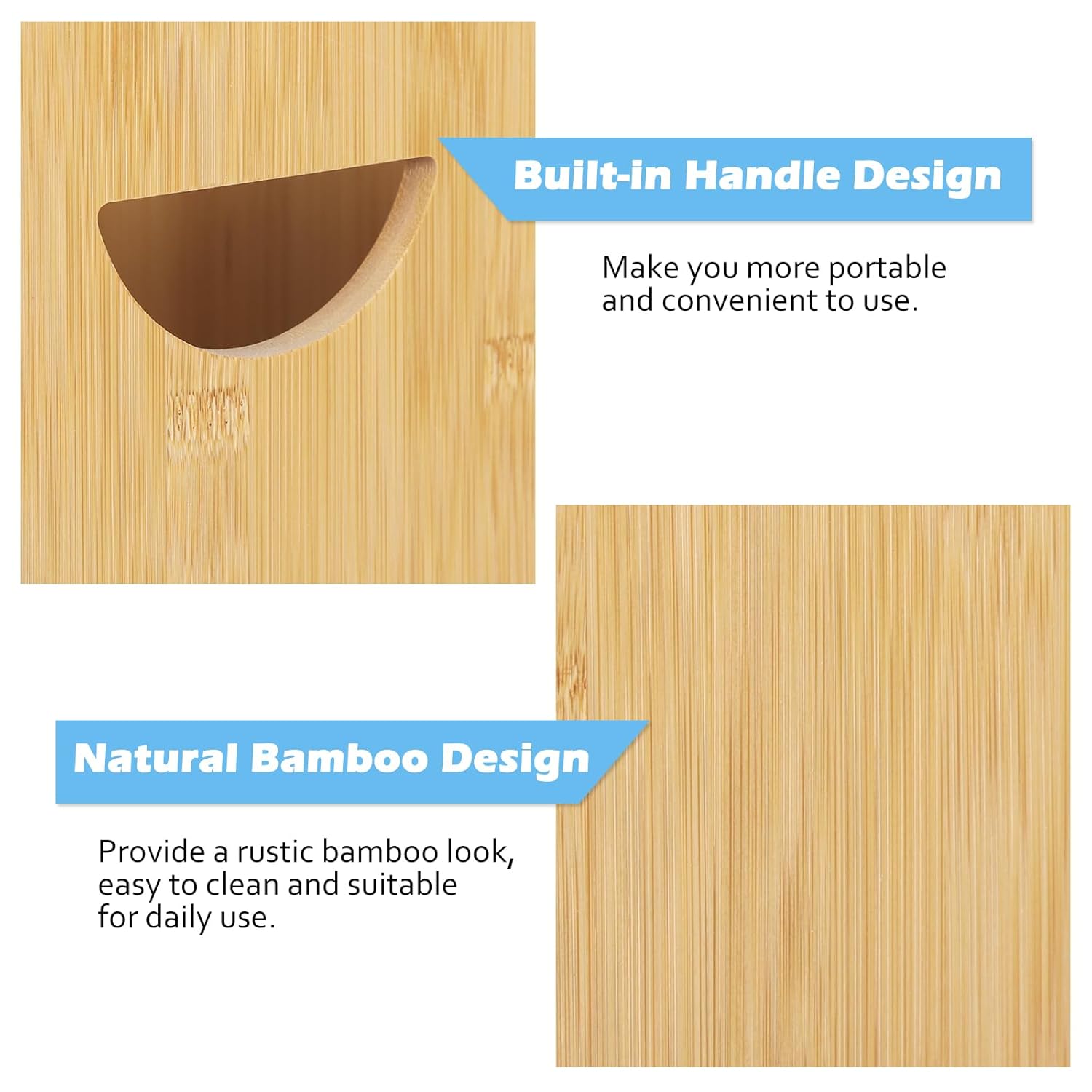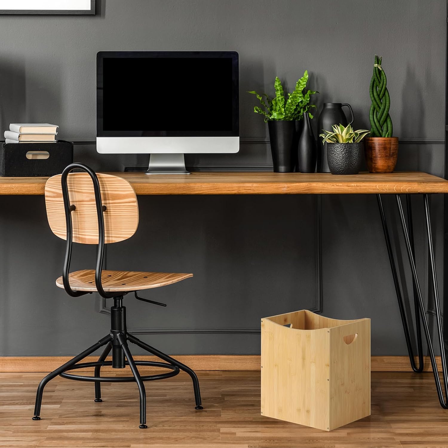 MOOACE Small Wastebaskets, 5 Gallon Trash Can with Handles, Rectangular Waste Baskets Bamboo Garbage Can for Bathroom Kitchen Living Room Office Decorative Under Counter