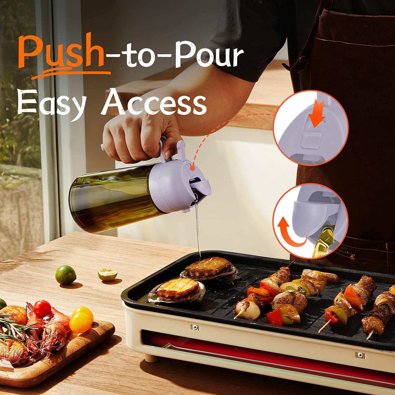 • Versatile Kitchen Tool: Combining the convenience of pouring and spraying in one bottle, this multifunctional design streamlines your cooking process. Whether you need a precise cooking spray for air frying or a controlled pour for stir-fries, it’s a practical addition to your kitchen appliances, keeping your kitchen clean and efficient
