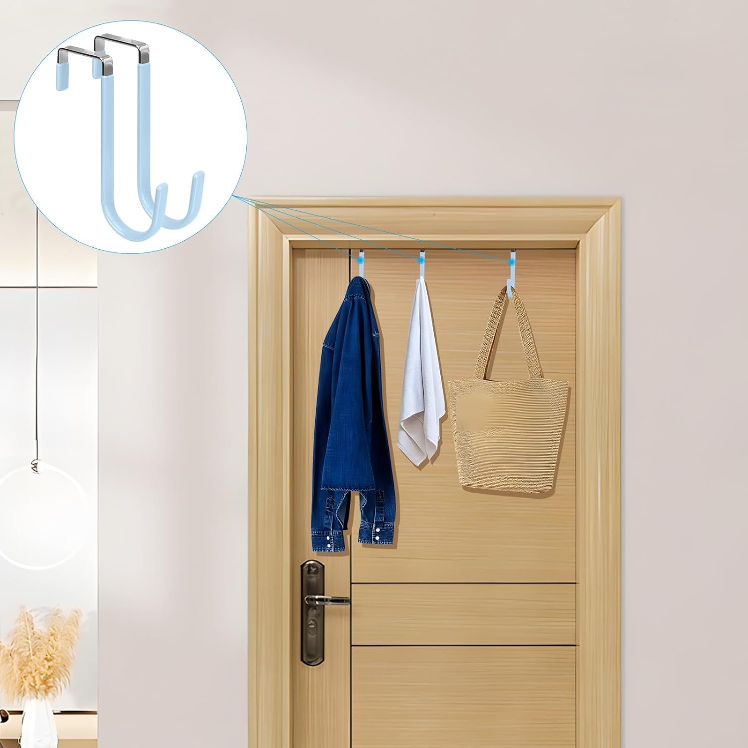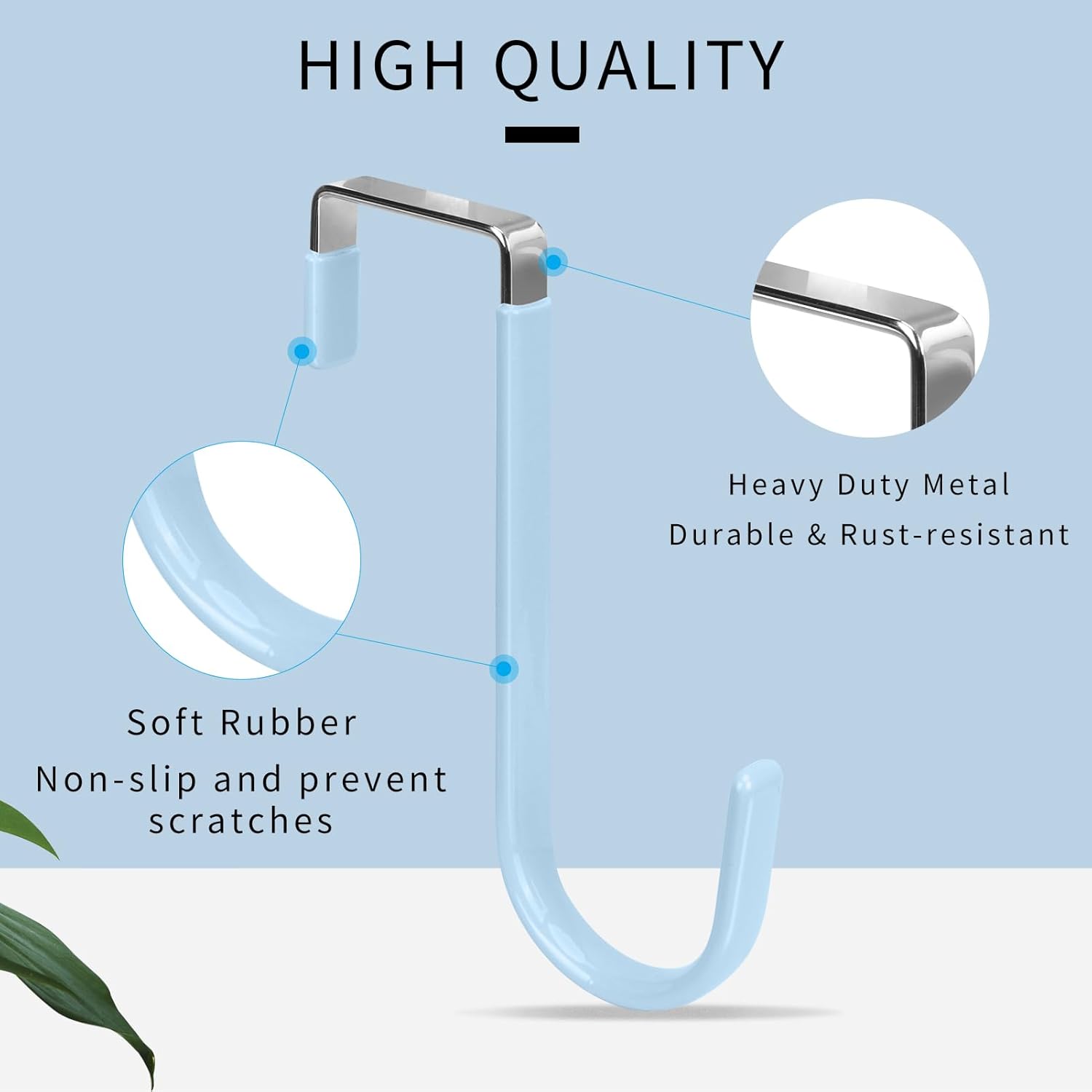 FYY Over The Door Hooks, 4 Pack Door Hangers Hooks with Rubber Prevent Scratches Heavy Duty Organizer Hooks for Living Room, Bathroom, Bedroom, Kitchen Hanging Clothes Towels Hats Coats Bags Cyan