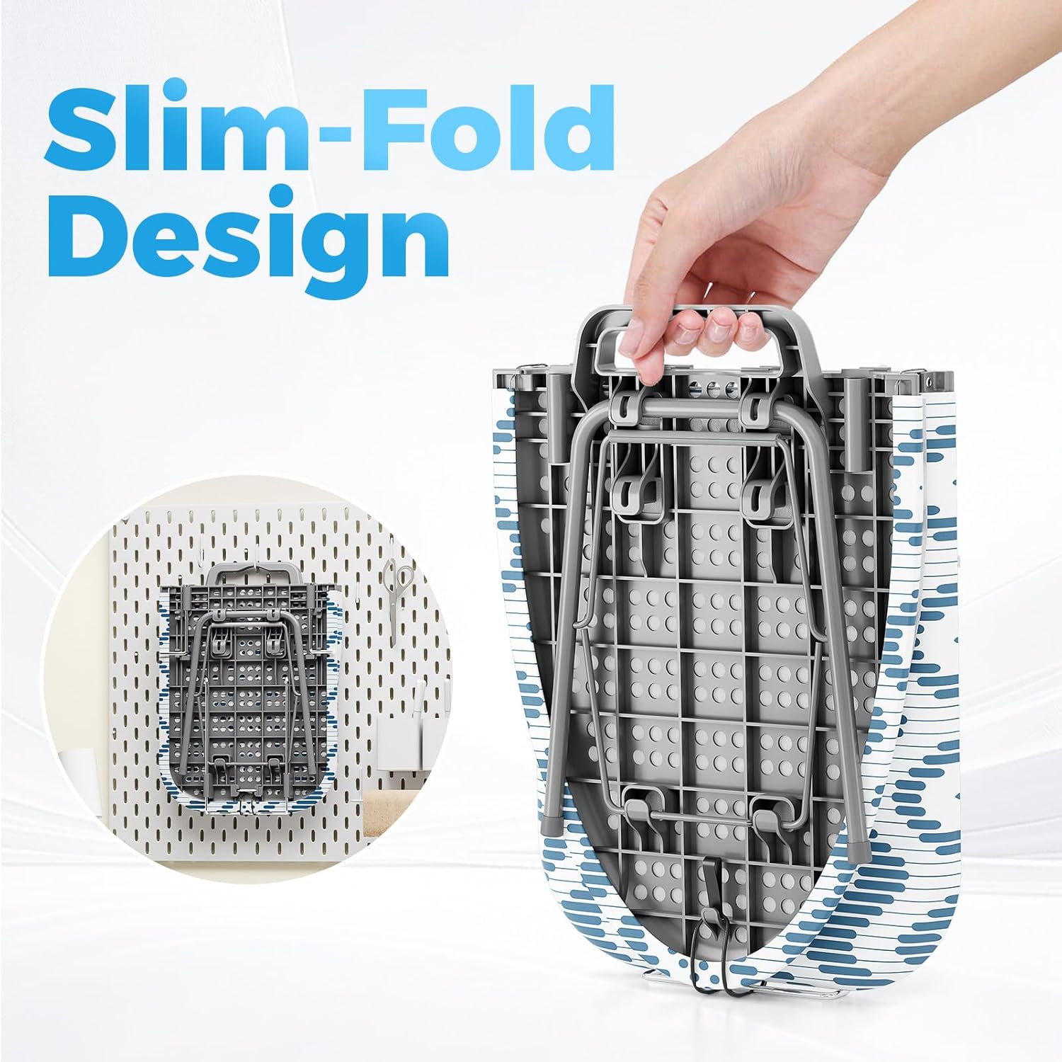 • Foldable and Space-Saving: KINGBOARD compact ironing board is specially designed to save space. After folding, it measures 12"x16.5" fits anywhere where space is limited. Its own hanging hook, easily hangs over any standard door, also can storage in a closet. Handle design is easy to carry wherever you needed
