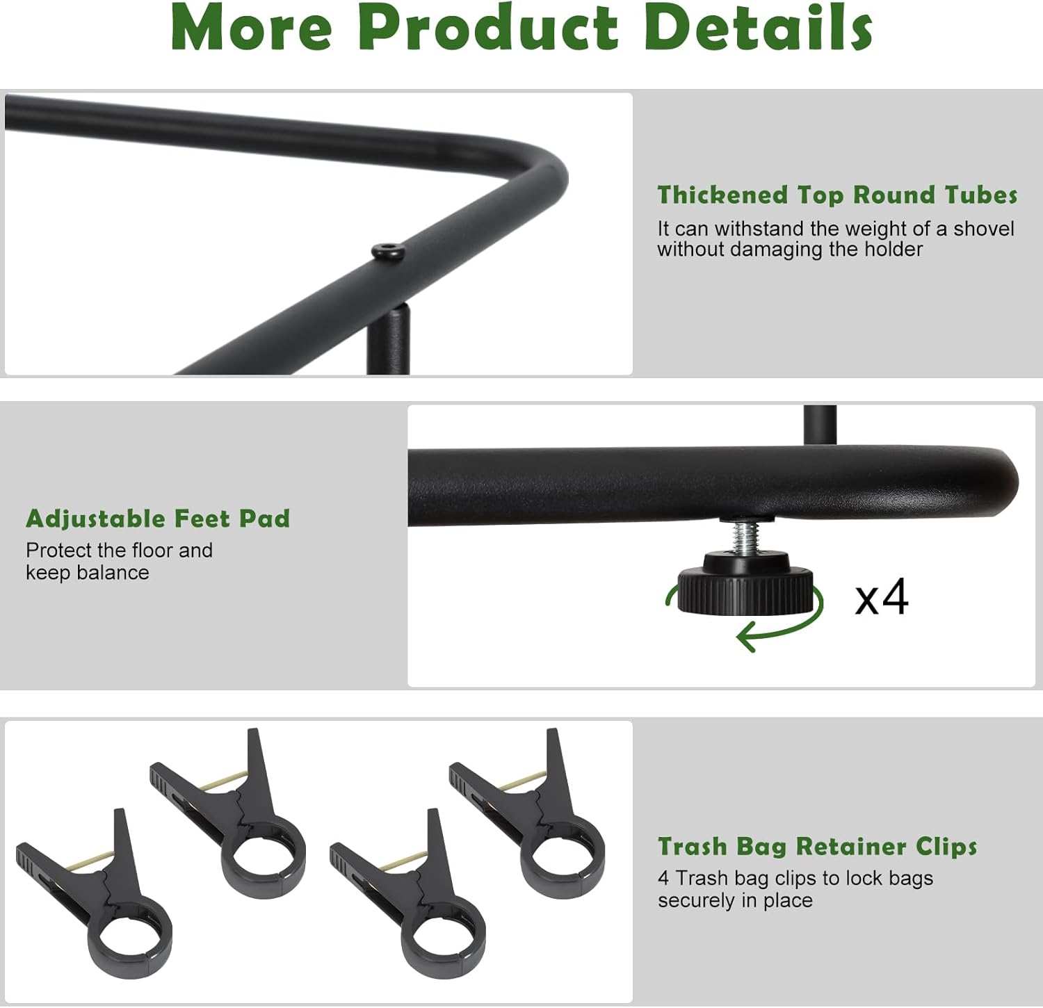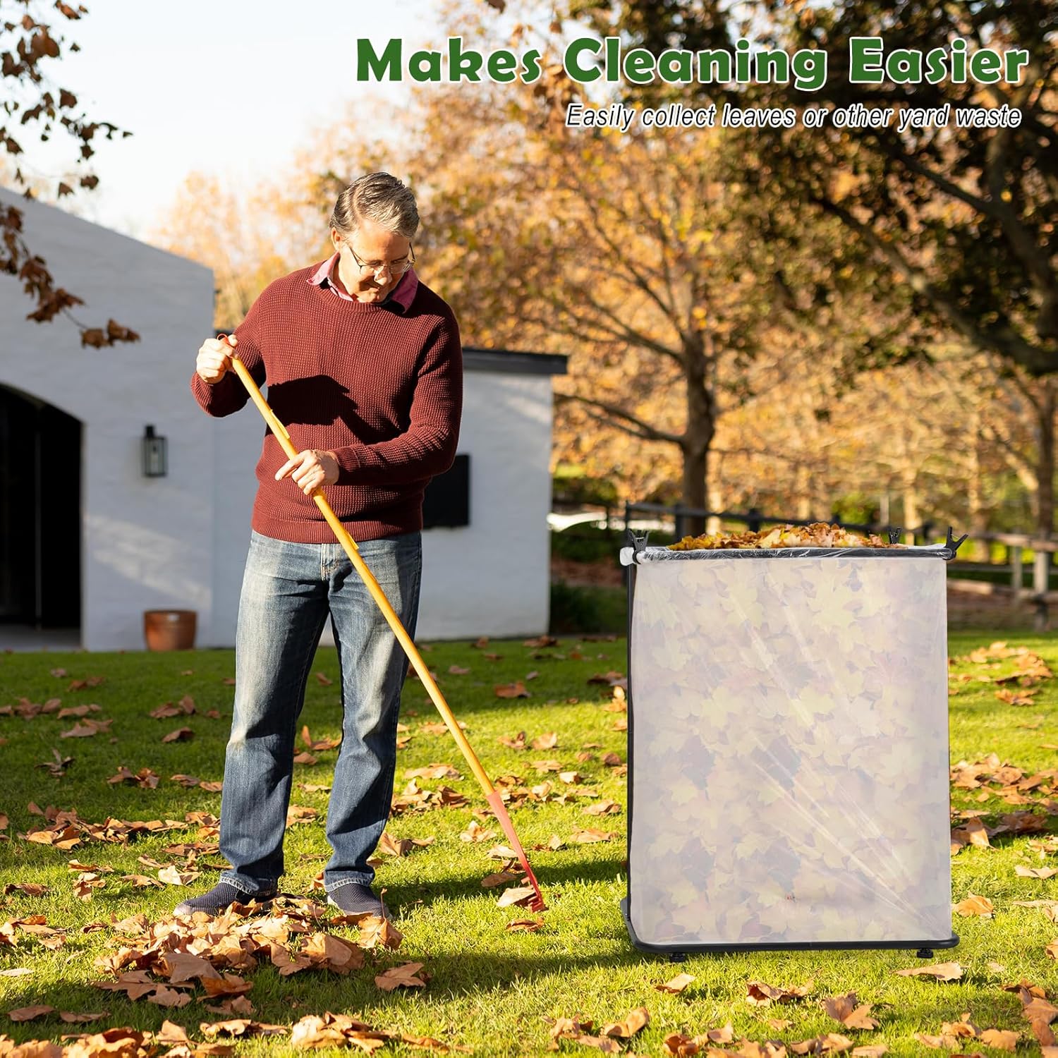 • 【Convenient Garbage Bag Holder】This trash bag holder is specially designed for collecting fallen leaves, weeding the garden, and mowing the lawn. The wide opening keeps the garbage bag open, making it easy to collect raked leaves and clippings. Even when cleaning up alone, it is still very convenient and effortless. It also comes with 4 clips to secure the leaf bag to the camping trash bag holder to prevent the bag from being blown away or slipping off.