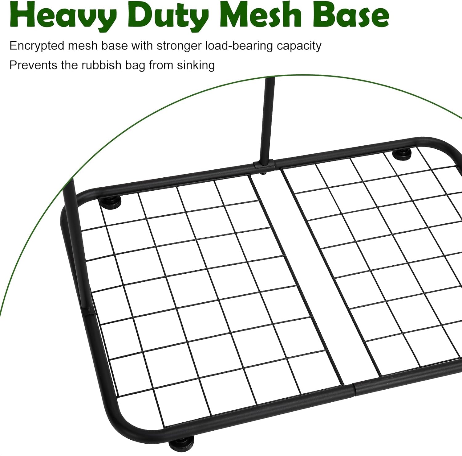 • 【Sturdy Trash Bag Holder】This garbage bag holder stand is made of black heavy-duty metal with an anti-rust coating suitable for outdoor use. It is dirt-resistant and rust-proof, ensuring that it remains sturdy and reliable even in harsh weather conditions. The encrypted mesh base design gives the garbage holder greater load-bearing capacity, making it more stable and preventing the garbage bag from sinking.