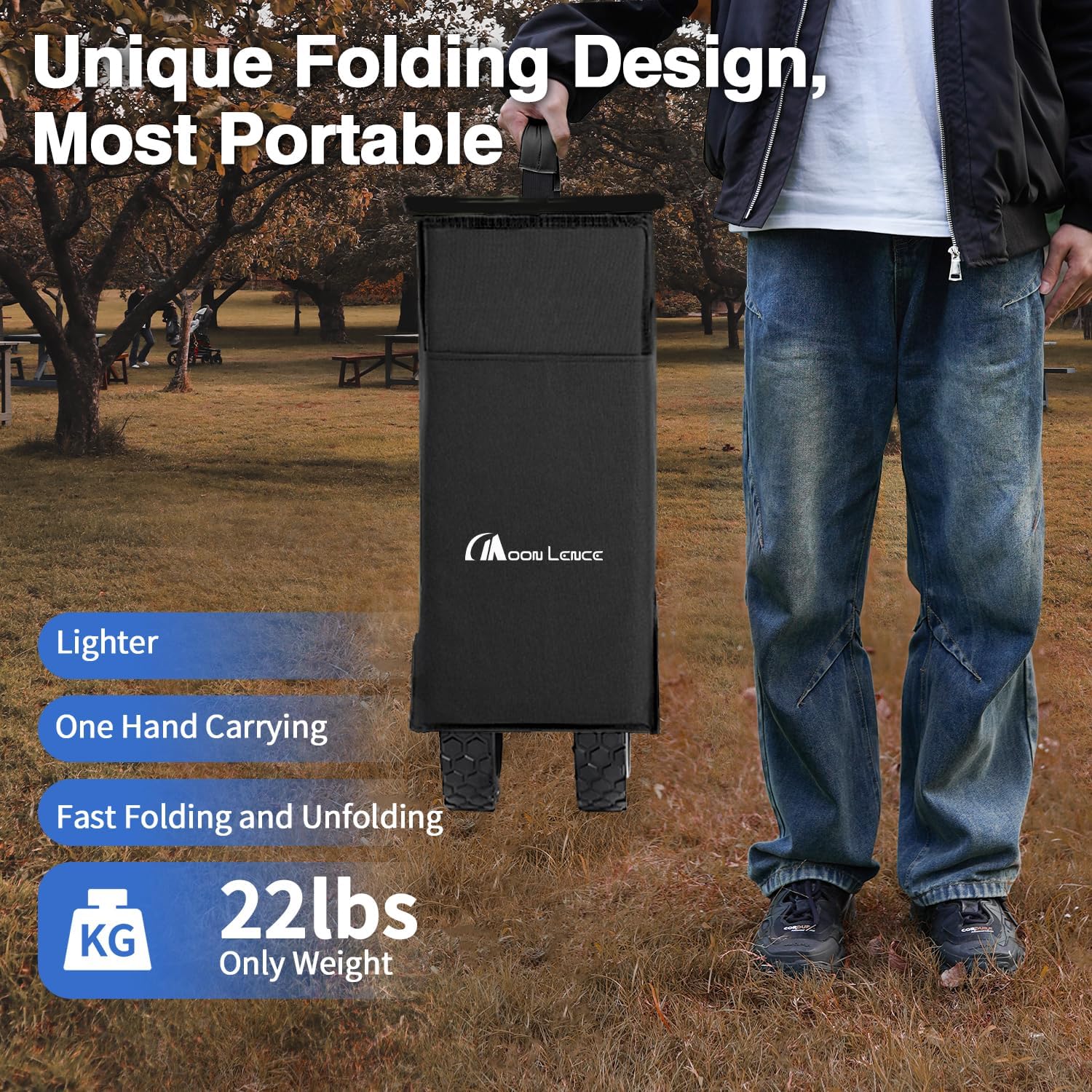 Moon Lence Large Collapsible Folding Wagon Cart Heavy Duty Folding Garden Portable Handy Cart with All-Terrain Beach Wheels, Adjustable Handle & Drink Holders (Black-New)