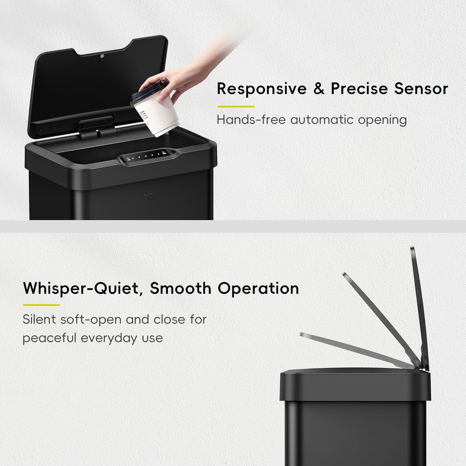 • Premium Motion Sensor Technology - Experience the smoothest, most seamless lid opening and closing technology with this EKO hands-free automatic trash can.