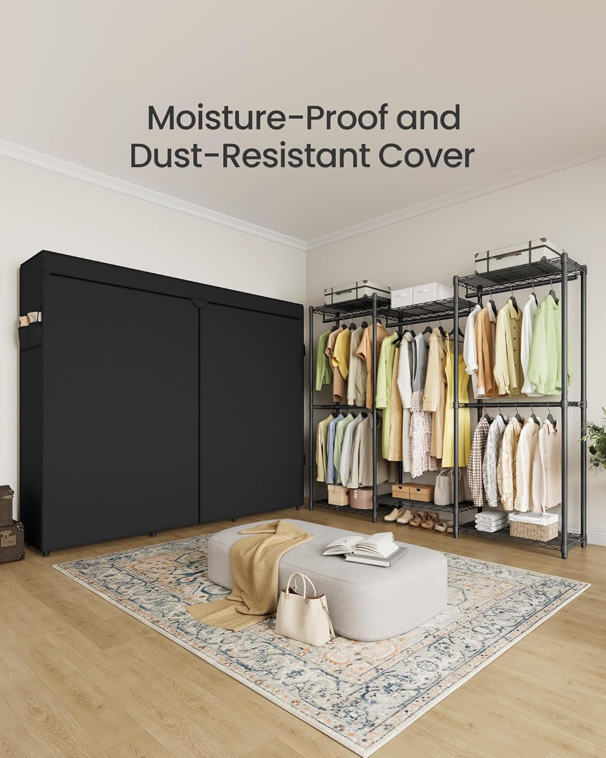 • 【AWAY FROM DUST】Your favorite garments deserve to stay pristine and be better protected. The fabric cover, complete with a zipper and hook-and-loop fasteners, ensures your clothes are stored properly. No more dust worries!