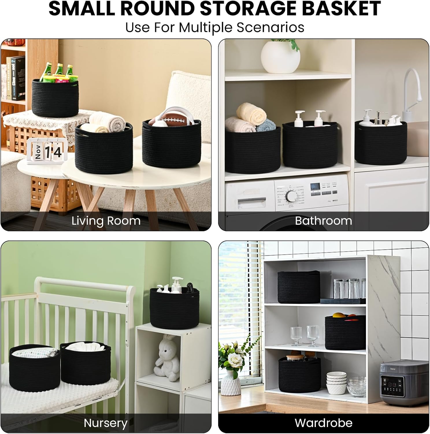 • Multi-Purpose Mini Baskets: Looking for small baskets for gifts? This small black woven basket is an excellent choice, offering a little basket charm that's perfect for gifting. And it can be sorted to store cosmetics, jewelry, baby diapers, remote controls, keys, credit cards, wallets, charging cables, toys, snacks, paper towels and more