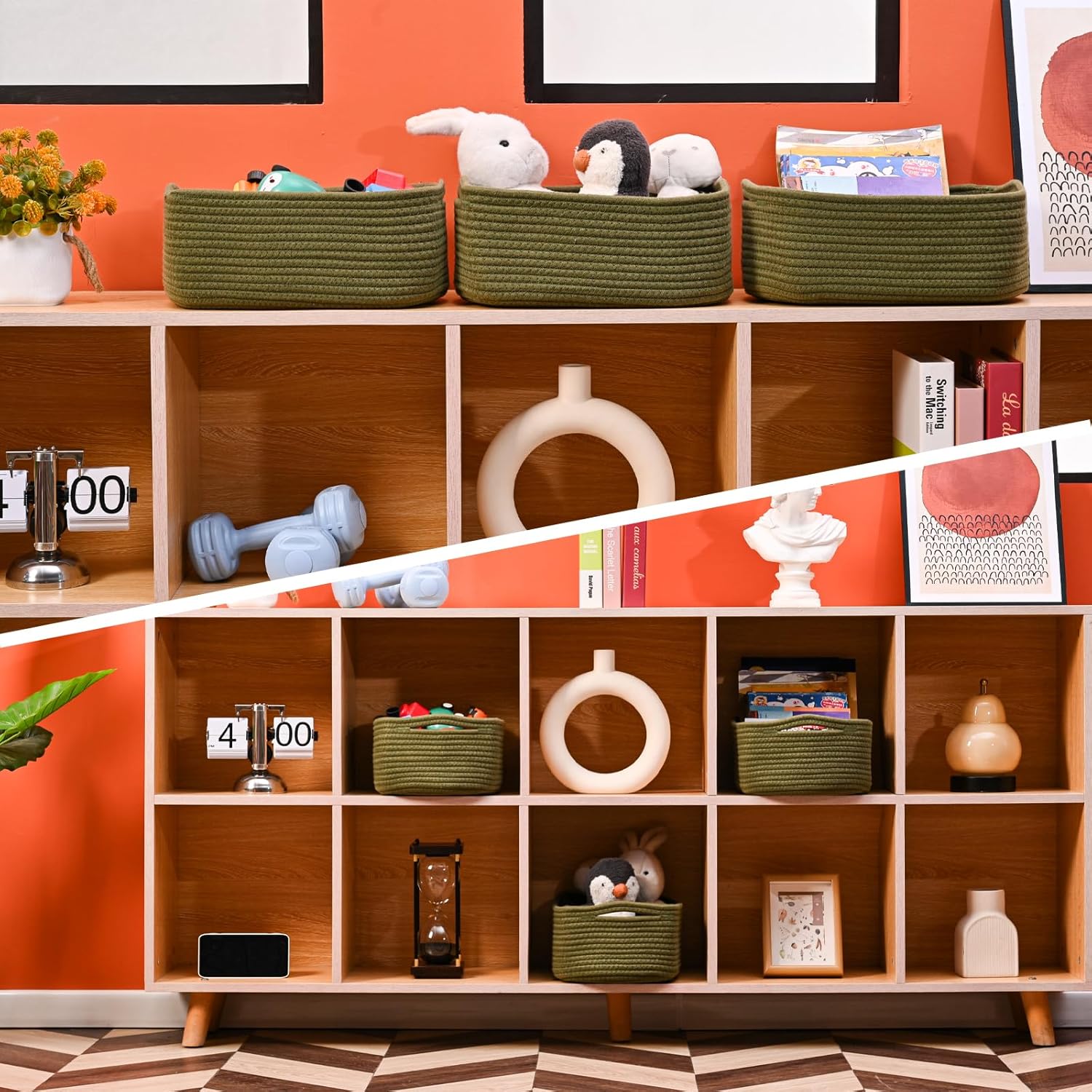 • Compact Size: These green, rectangular small storage bins are ideal for organizing and storing your essentials. Its compact size of 13×8.5×5.1 inches makes it a versatile organizer basket for any space. Perfect for organizing small items on your desktop, in closets, or drawers.They can add a touch of warmth and texture to any living room, bedroom, sofa, shelves, wardrobe or closet