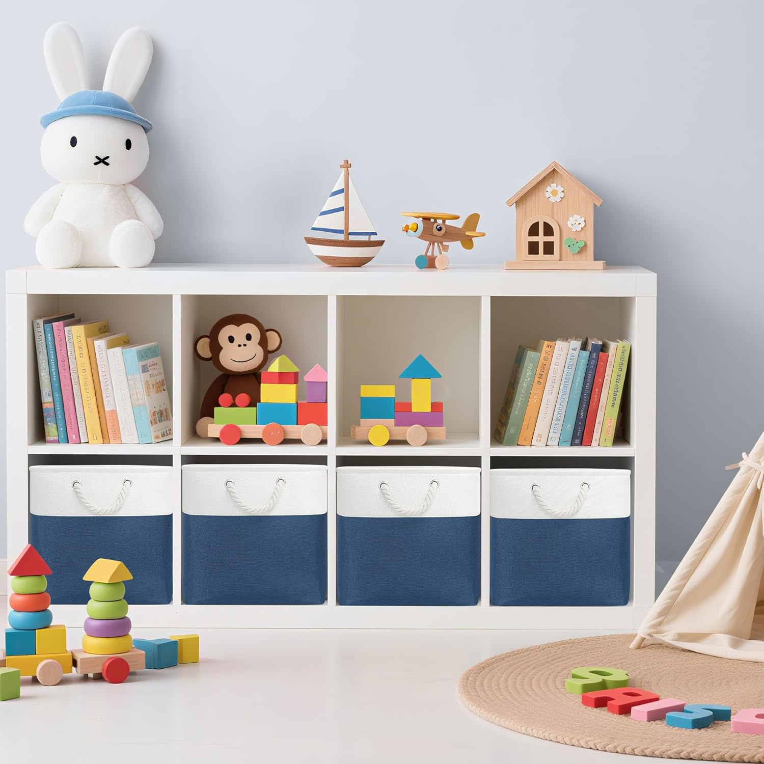 • 【Multi-Purpose Bins】Cubes storage bins can be placed in cabinets, closets, side tables, shelves and other places. It is also suitable for the living room, bedroom, lounge and bathroom to provide a variety of storage needs, such as storing clothes, children's toys, baby products, blankets, sports equipment and so on. Beautiful and fashionable 13 x 13 storage cubes, suitable for a variety of scenes and also meet the storage function.