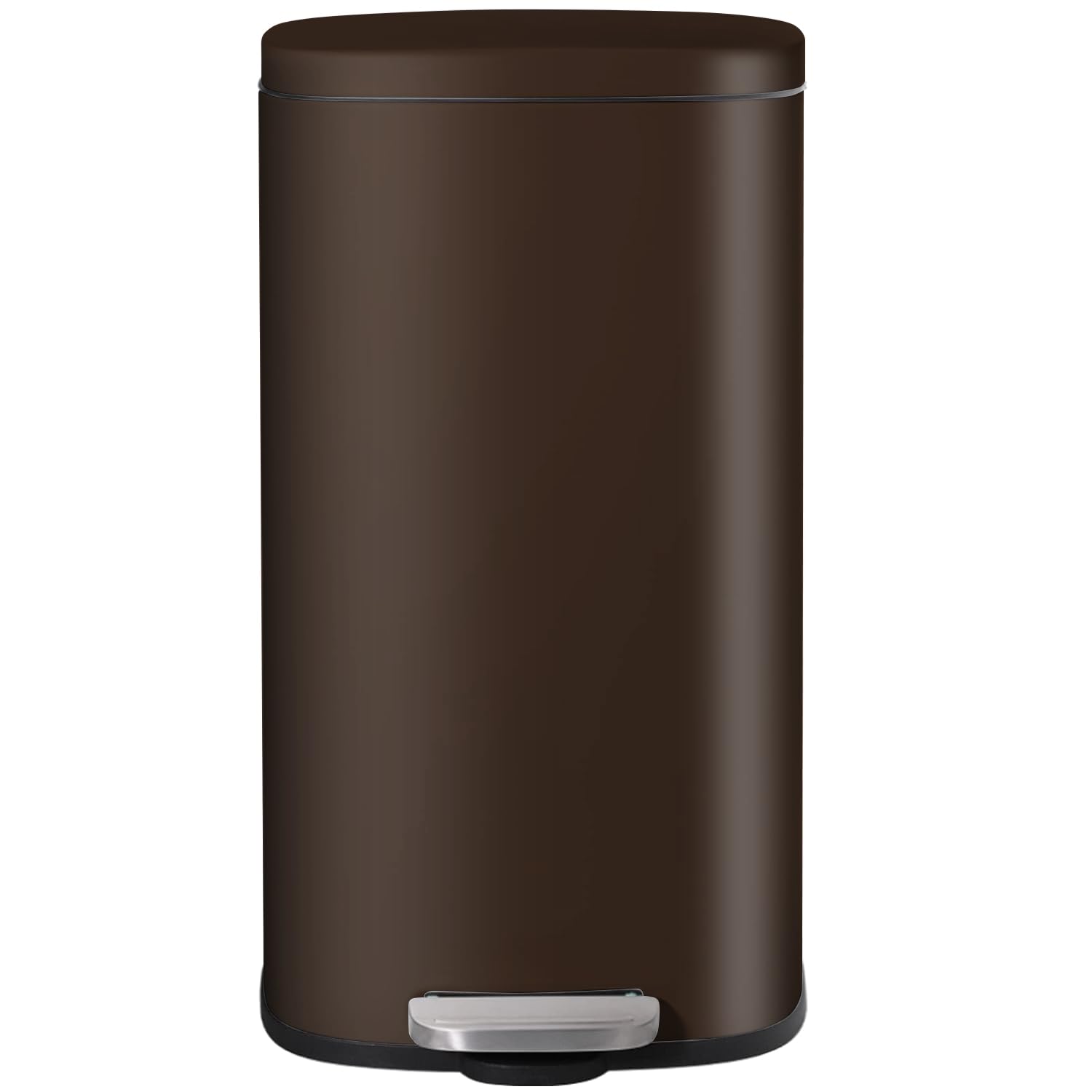 AthLike Trash Can, Stainless Steel Kitchen Garbage Can, Step Waste Bin with Hinged Lid and Removable Inner Bucket, Soft-Close, Dustbin for Bathroom Bedroom Living Room Home (Brown, 8 Gal)