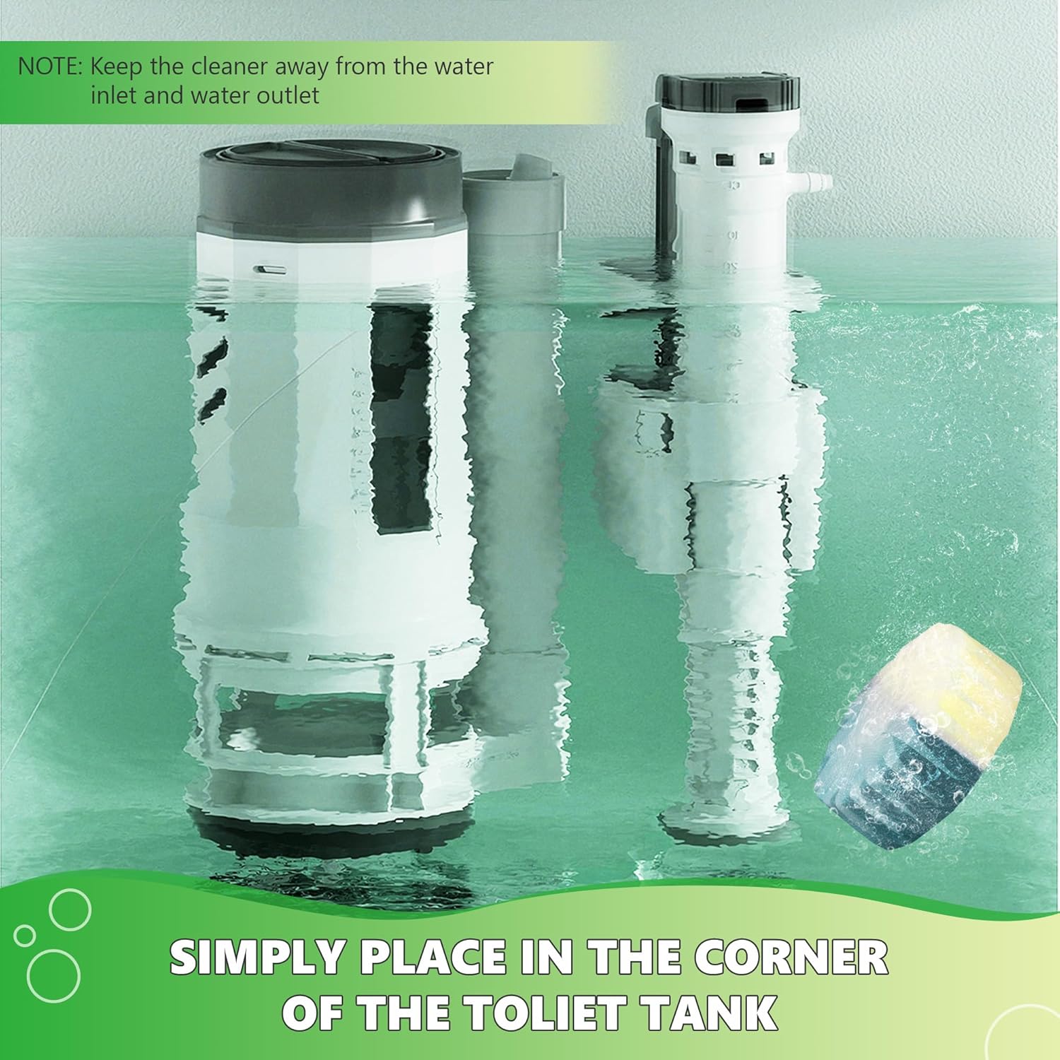 • Easy to Use: Simply place a piece of toilet tank cleaner tablet into the tank (away from the spout and inlet) and let it fully dissolve for at least 30 minutes;(Please note, do not remove the water-soluble transparent protective film)
