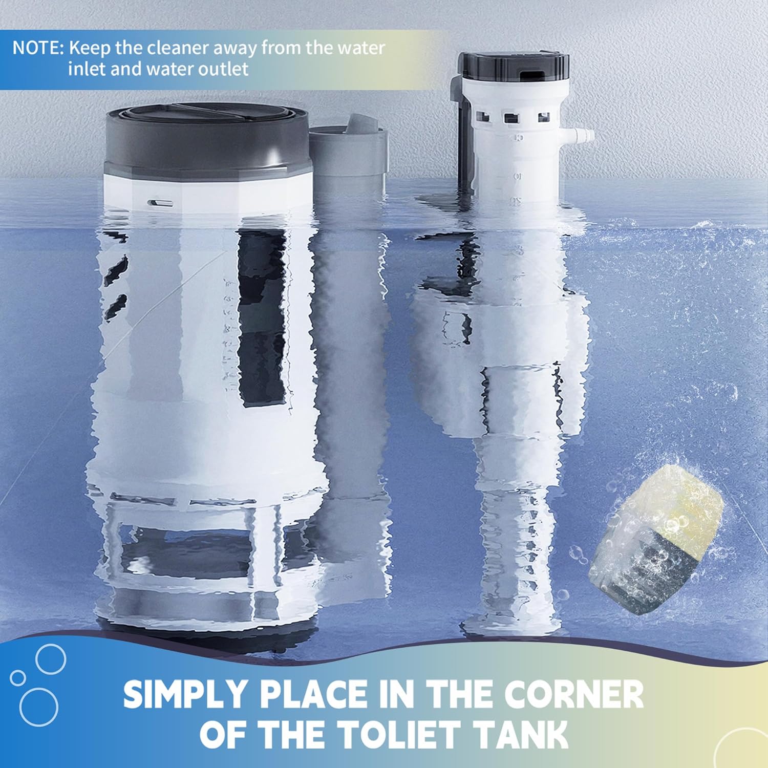 • Easy to Use: Simply place a piece of toilet tank cleaner tablet into the tank (away from the spout and inlet) and let it fully dissolve for at least 30 minutes;(Please note, do not remove the water-soluble transparent protective film)
