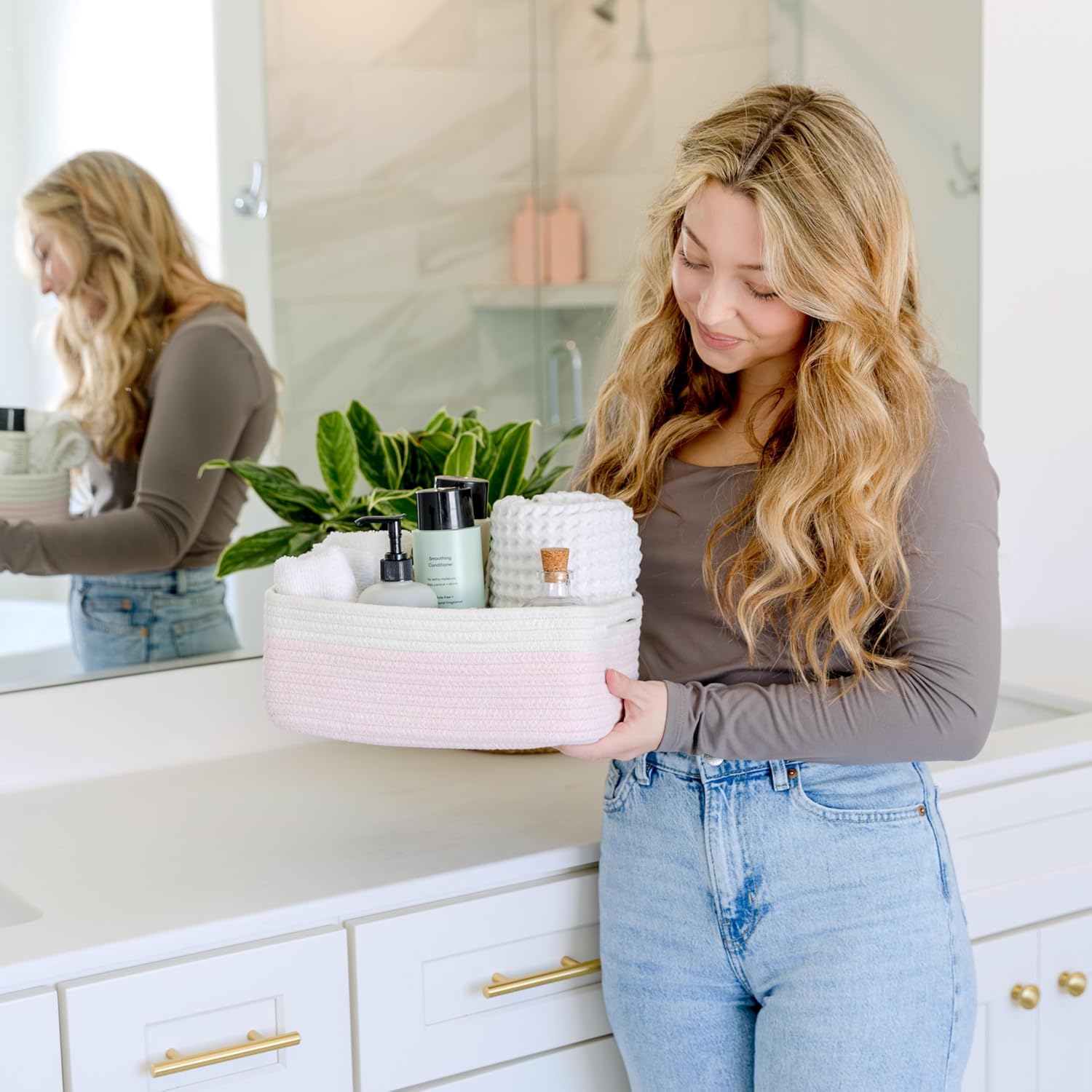 • Safe, Natural Cotton Organizer Bins: Crafted from the highest quality material in the market, our storage bins are oh-so-sturdy (and cute) and ready to take on little humans. They’re 100% safe, so you can rest easy if teething toddlers take a nibble. Reinforced Hidden Handles: Now you see ‘em, now you don’t! With completely hidden handles that blend seamlessly into the rope basket, you’ll be the Houdini of home organizing. They’re even double-stitched and reinforced for extra heavy loads!