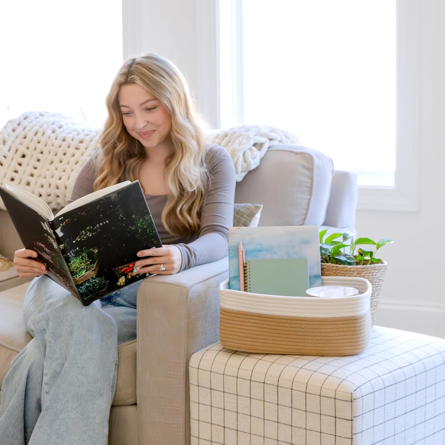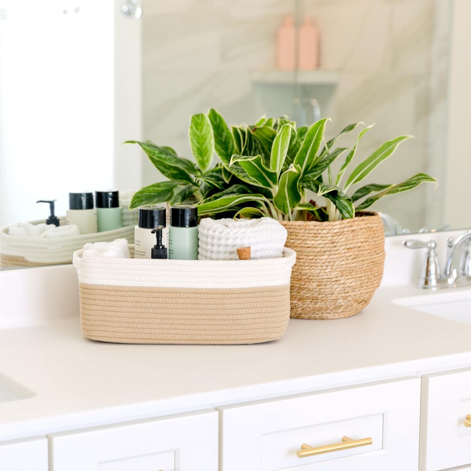 • Safe, Natural Cotton Organizer Bins: Crafted from the highest quality material in the market, our storage bins are oh-so-sturdy (and cute) and ready to take on little humans. They’re 100% safe, so you can rest easy if teething toddlers take a nibble. Reinforced Hidden Handles: Now you see ‘em, now you don’t! With completely hidden handles that blend seamlessly into the rope basket, you’ll be the Houdini of home organizing. They’re even double-stitched and reinforced for extra heavy loads!