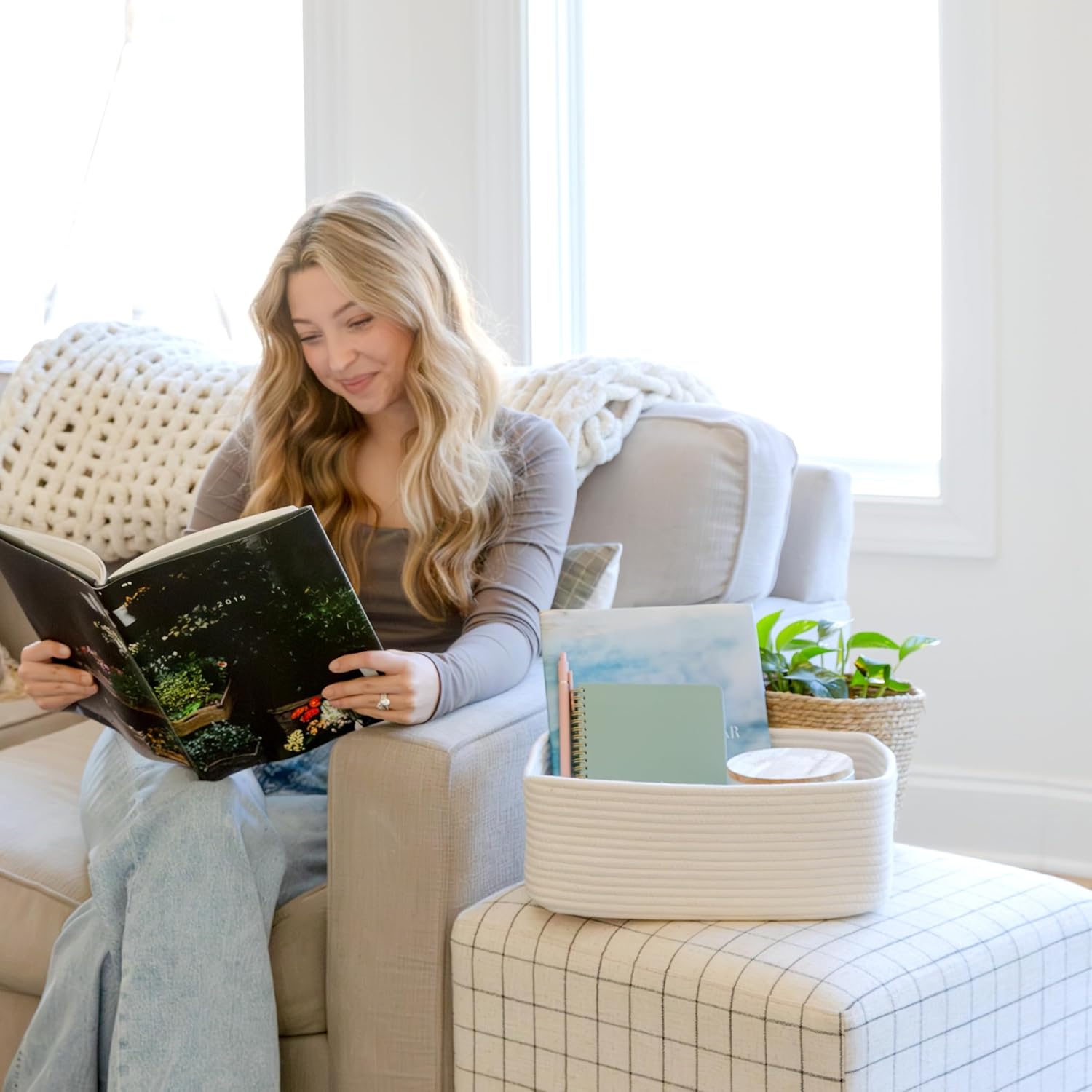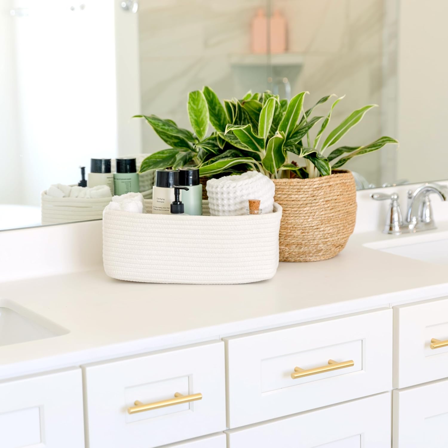 • Safe, Natural Cotton Organizer Bins: Crafted from the highest quality material in the market, our storage bins are oh-so-sturdy (and cute) and ready to take on little humans. They’re 100% safe, so you can rest easy if teething toddlers take a nibble. Reinforced Hidden Handles: Now you see ‘em, now you don’t! With completely hidden handles that blend seamlessly into the rope basket, you’ll be the Houdini of home organizing. They’re even double-stitched and reinforced for extra heavy loads!