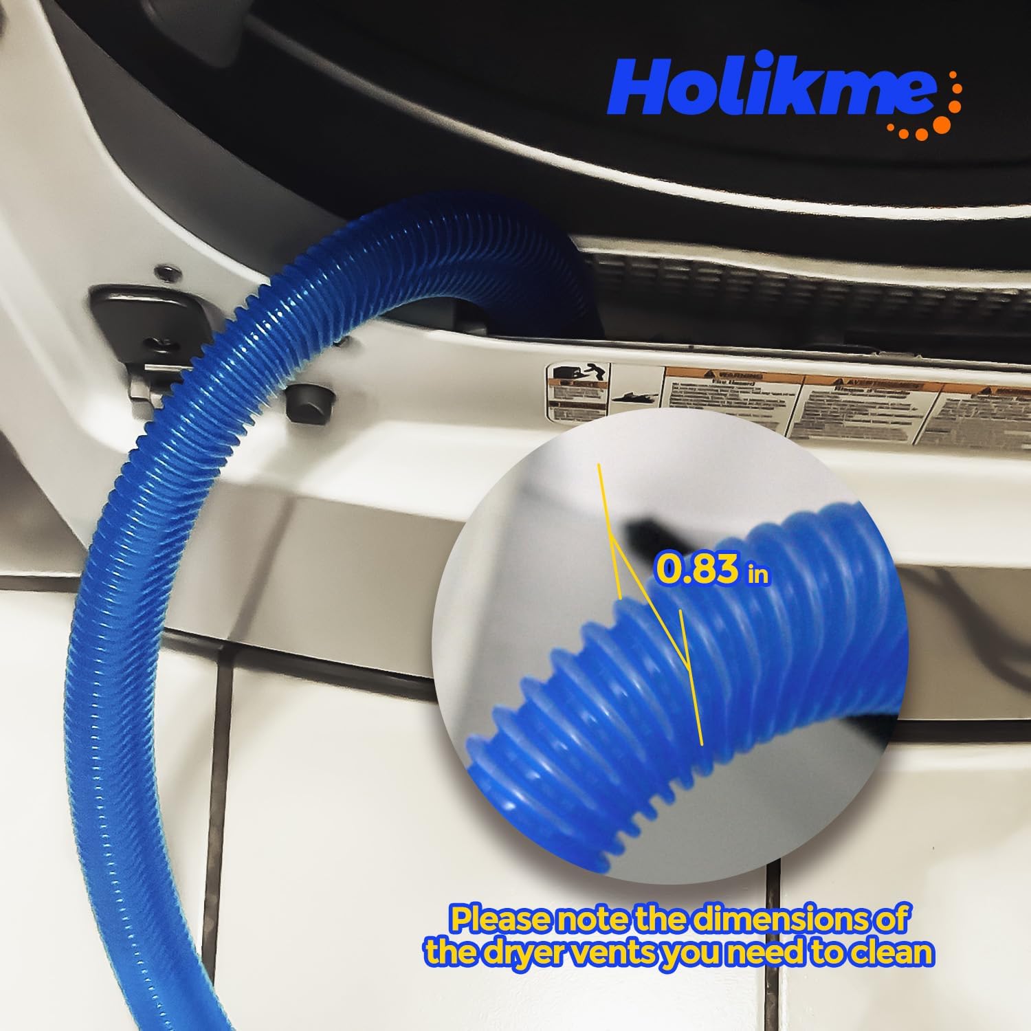 Holikme 2 Pieces Dryer Vent Cleaner Kit, Dryer Lint Vacuum Attachment and Flexible Dryer Lint Brush, Dryer Vent Vacuum Hose Attachment,Dark Blue