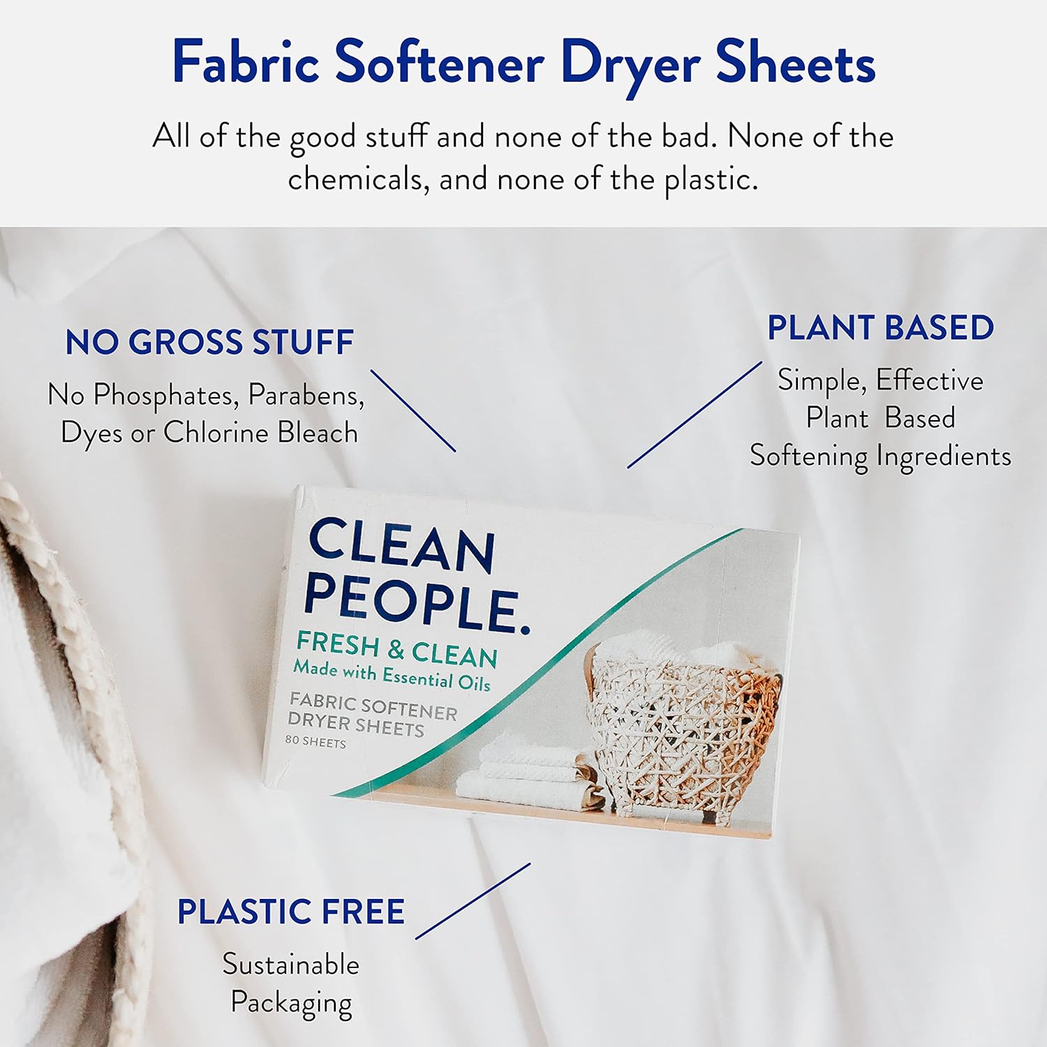 • Unlike others, our dryer sheets are not scented with synthetic fragrances but with essential oils. 240 Sheets of Clean People Fabric Softener with a great Fresh Scent. That's 240 soft & static free loads!