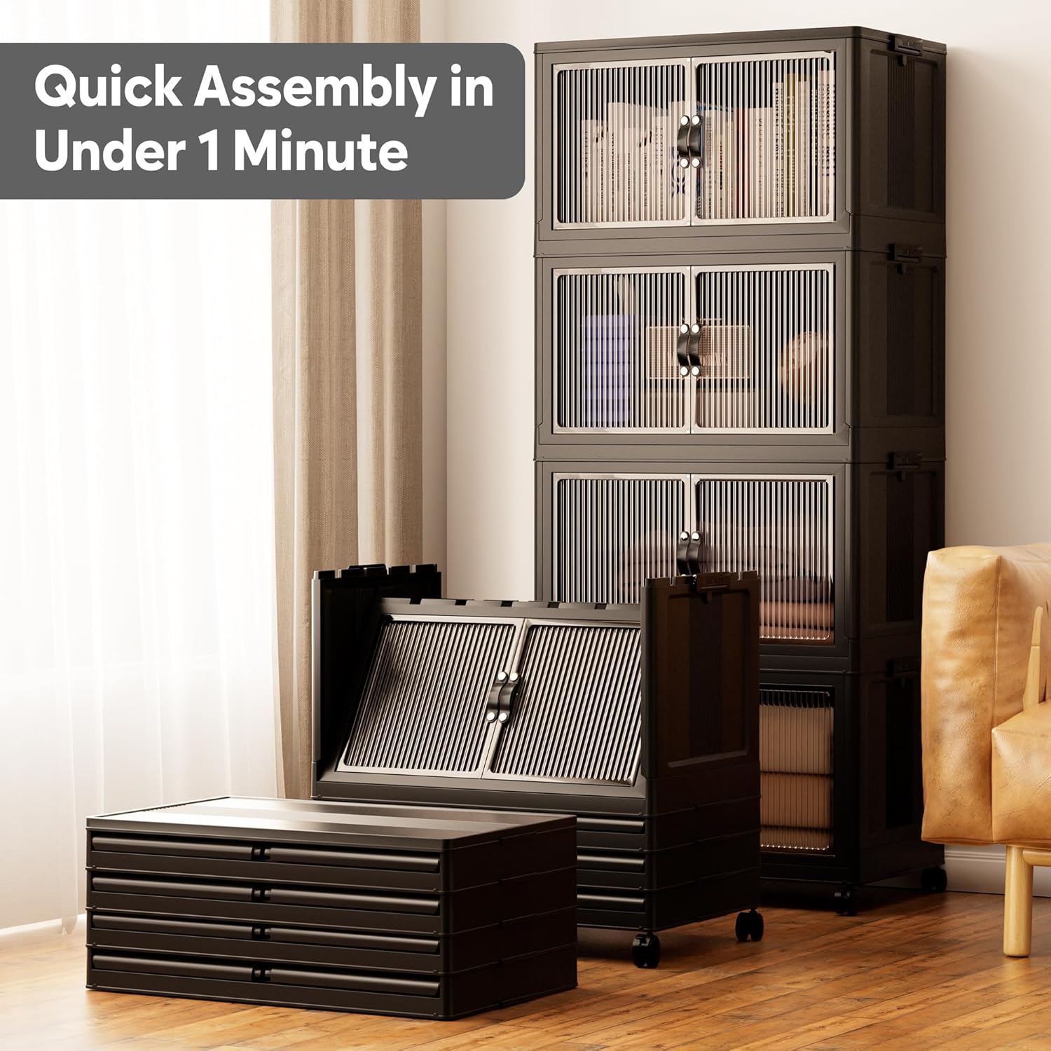 • 【Magnetic Doors & Rotating Wheels】The bins offer two opening options: front or top. The magnetic closure allows easy access. The 4 wheels make them easy to move, ideal for use in storage and organization in any room like your closet or bathroom.