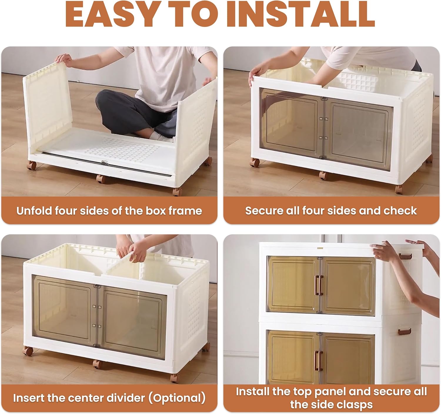 • [𝐄𝐚𝐬𝐲 𝐭𝐨 𝐀𝐬𝐬𝐞𝐦𝐛𝐥𝐞] These stackable storage bins are designed for easy, tool-free assembly, ensuring maximum convenience. With a user-friendly design and straightforward instructions, you can set them up in no time. The bins stack securely on top of each other, providing a safe and organized storage solution. Smooth-rolling wheels make it easy to move them wherever you need.