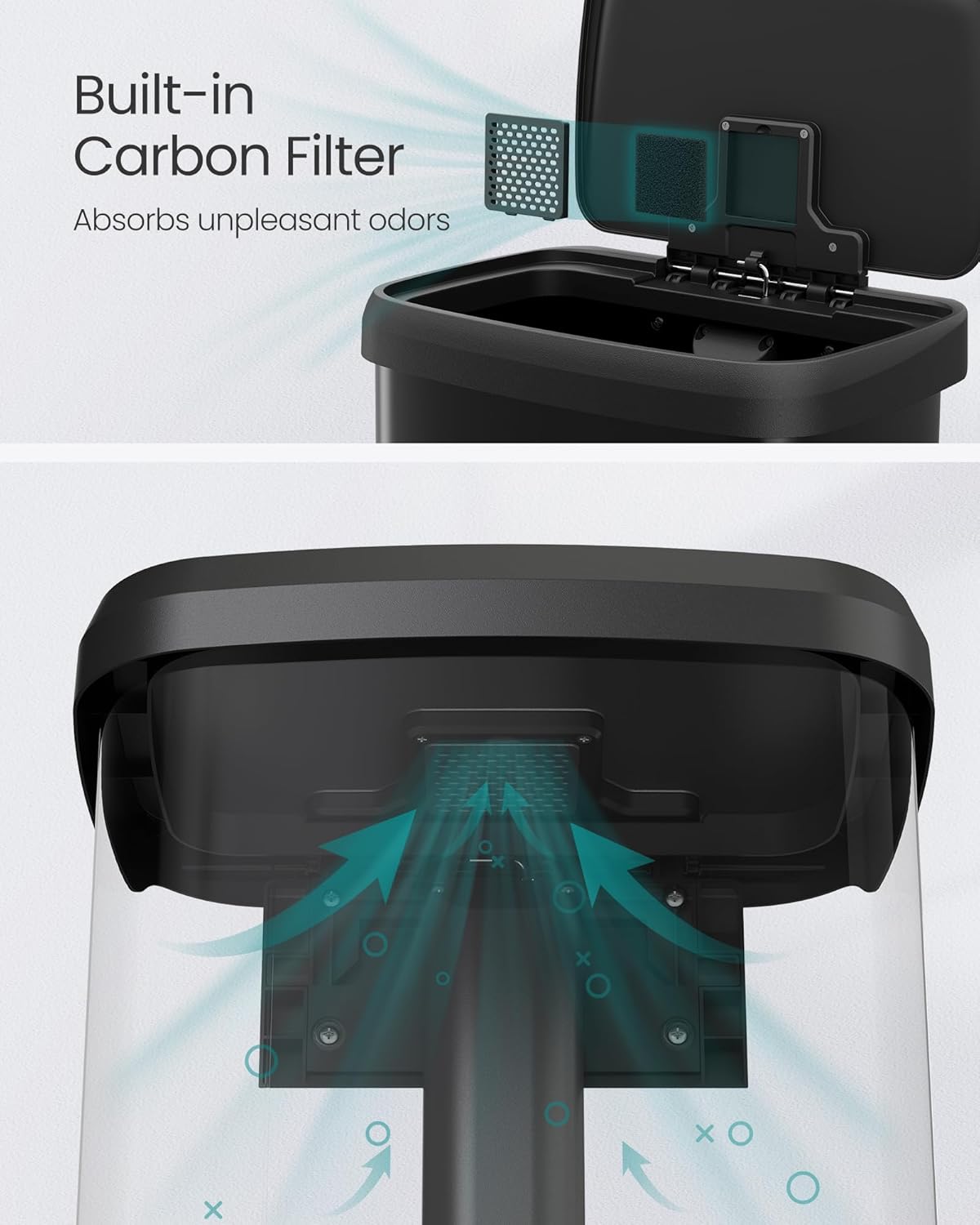 • [Thoughtful Detailing] The carbon filter in the lid helps absorb unpleasant odors, keeping your kitchen smelling fresh