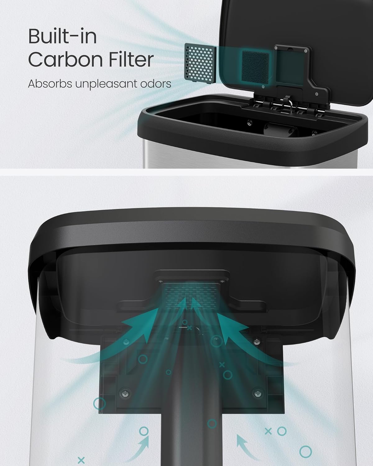 • [Thoughtful Detailing] The carbon filter in the lid helps absorb unpleasant odors, keeping your kitchen smelling fresh