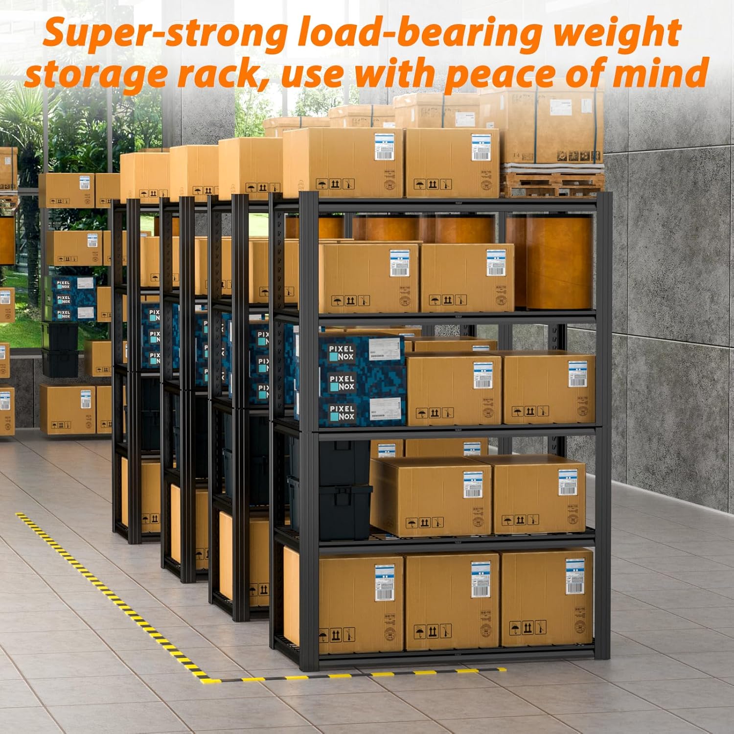 • 【2800 LBS Heavy Duty Shelving】This heavy duty garage shelving unit has thickened double metal legs. Made of high-quality metal, each solid thickened metal shelving with 1 upgrade support strip beneath can hold up to 560 lbs, with a total bearing capacity of 2800 lbs, which makes industrial garage shelves heavy duty more stable and solid than normal metal shelves for storage and more stuff can be stored.