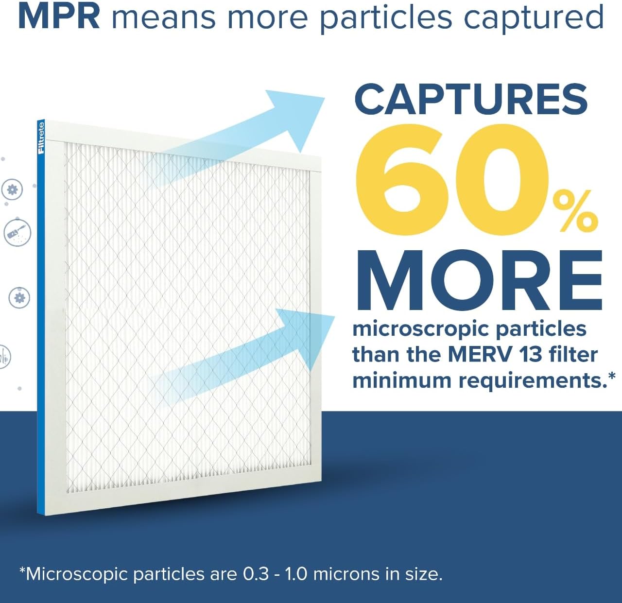 • CAPTURES MICROPARTICLES: AC Filter with a 1900 MPR and MERV 13 rating, as well as a 62% microparticle capture rate, your Filtrete Filter will help capture many microparticles between 0.3 and 1 micron from the air passing through it
