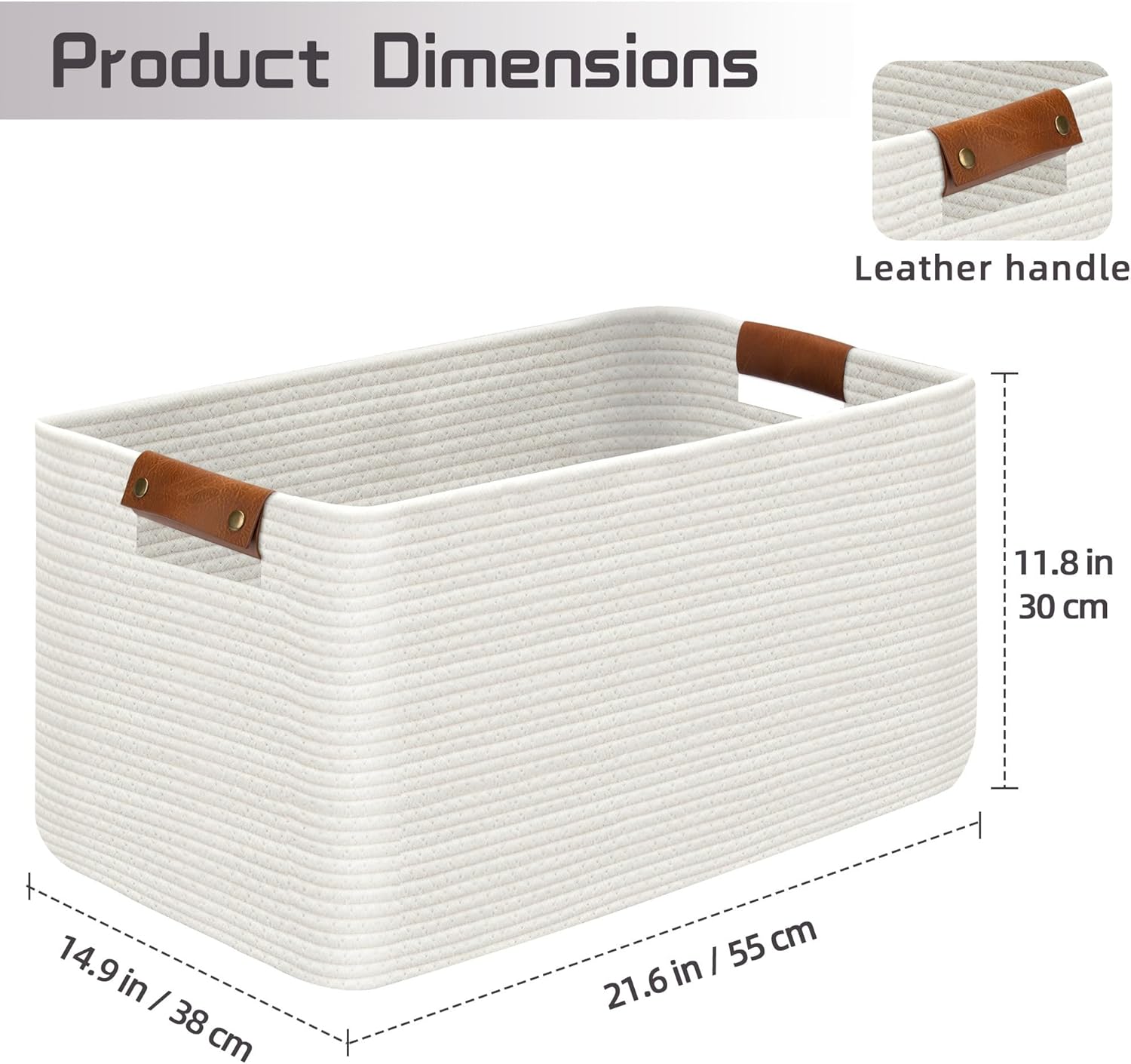 • Decorative & Versatile: Pure Natural Material Elevates Any Space - Laundry, Toys, or Blanket Storage Solution.The elegant leather handles not only take care of your hands but also add a distinctive highlight to our large baskets.