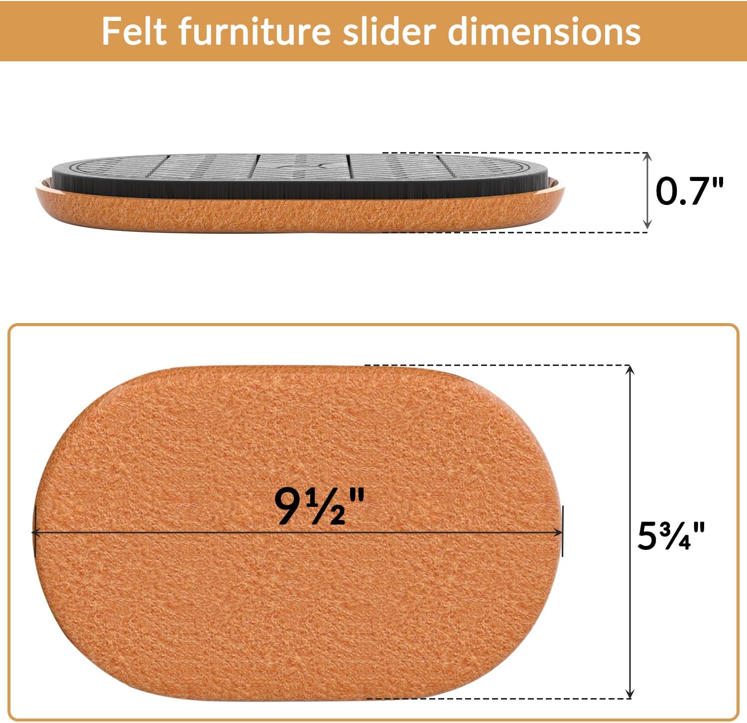 9½"x5¾ Felt Furniture Sliders for Hardwood Floors, 4PCS Oval Furniture Pads for Wood Floors, Furniture Movers for Heavy Duty Furniture, Move Furniture Easily
