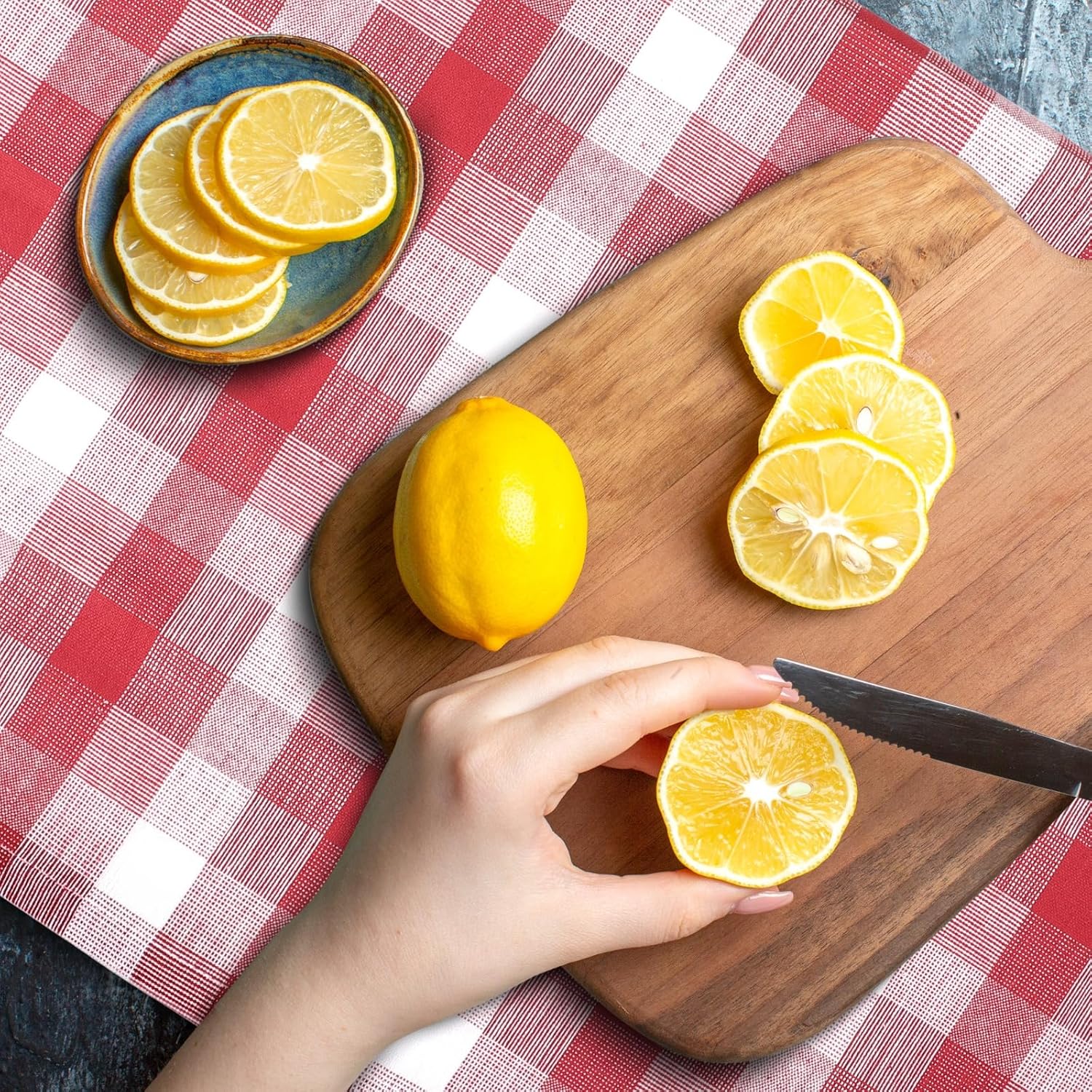 Christmas Kitchen Towels Set of 6 Red/White Checks, Reusable Cotton 20X30 Inches Dish Towel Highly Absorbent Premium Quality Ultra Soft Mitered Corners Kitchen Towels