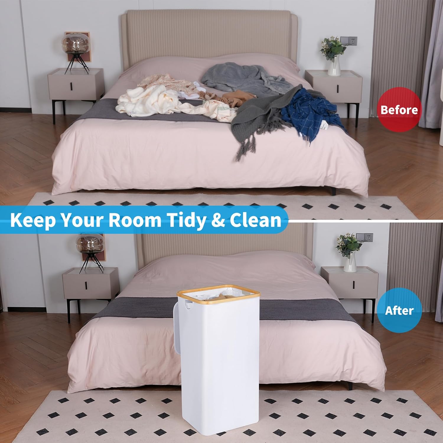 • 【Bamboo Handles and Removable Liner】The Laundry bin comes with sturdy bamboo handles for easy carrying and a removable inner bag for convenient laundry sorting and machine washing. The bamboo handles offer a natural, eco-friendly touch, while the liner simplifies the laundry process, keeping your space organized and clean.