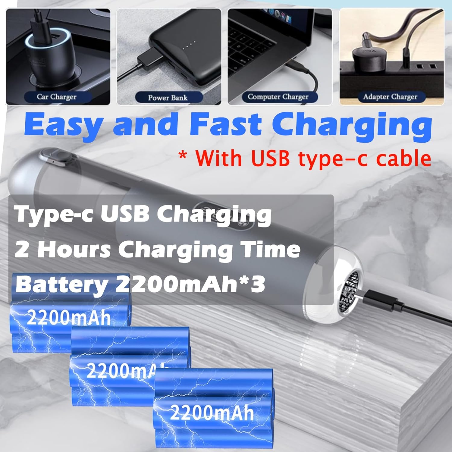 • Fast Charge & Long Lasting Time: The cordless vacuum handheld takes only 2.5 hours to fast charge the mini vacuum cleaner. 2200mAh*3 batteries and fast charging technology. It offers the USB-C universal charging port takes the hassle out of finding a dedicated charging cable