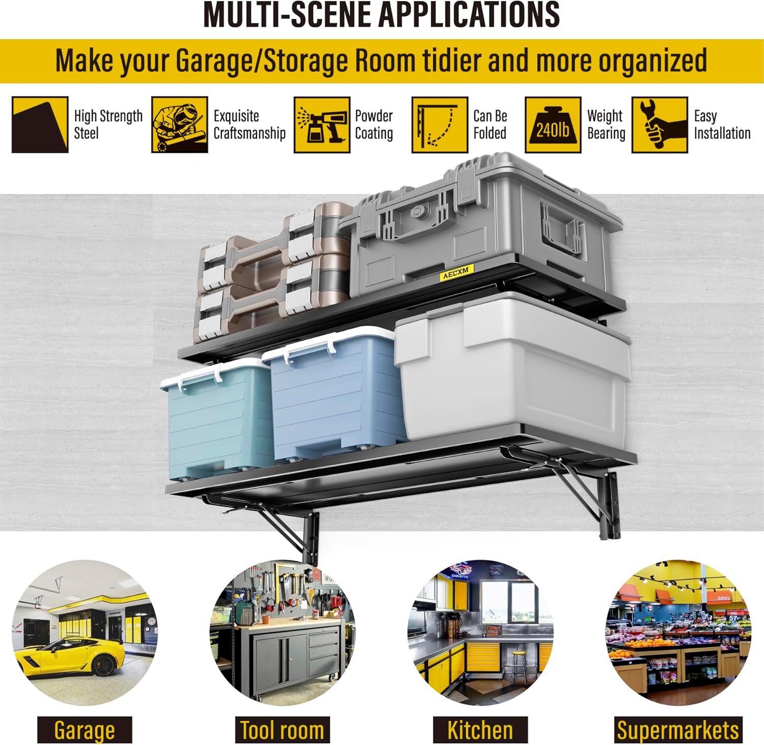 • STABLE AND SAFE: Folding storage racks are reinforced and safely designed for each connecting pivot point, With chamfered corners to prevent bumps and injuries, the overall solid and beautiful, Allowing you to organize and categorize messy and scattered items in an orderly manner, Making your garage/storage room tidier and more efficient to use while expanding the space. Perfect for walls in garages, Storage rooms, Living rooms, Kitchens and other interior spaces