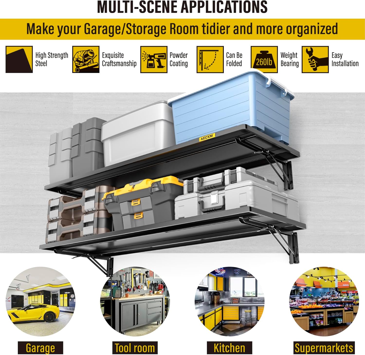 • STABLE AND SAFE: Folding storage racks are reinforced and safely designed for each connecting pivot point, With chamfered corners to prevent bumps and injuries, the overall solid and beautiful, Allowing you to organize and categorize messy and scattered items in an orderly manner, Making your garage/storage room tidier and more efficient to use while expanding the space. Perfect for walls in garages, Storage rooms, Living rooms, Kitchens and other interior spaces