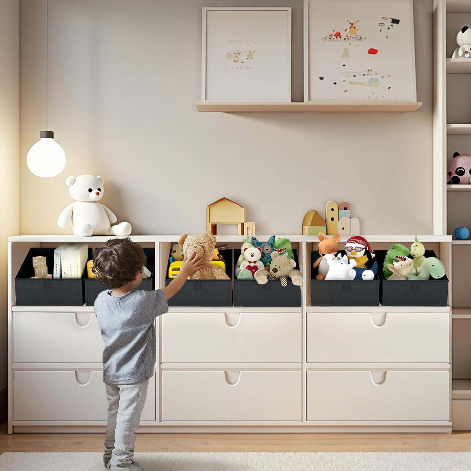 • 【Trapezoidal Design】These storage cubes are Trapezoid design that makes finding things convenient, also allows easy access when putting on the highest shelf. These are ideal closet bins for clothes, bags, shoes, towels, blankets, toys, dolls, and more