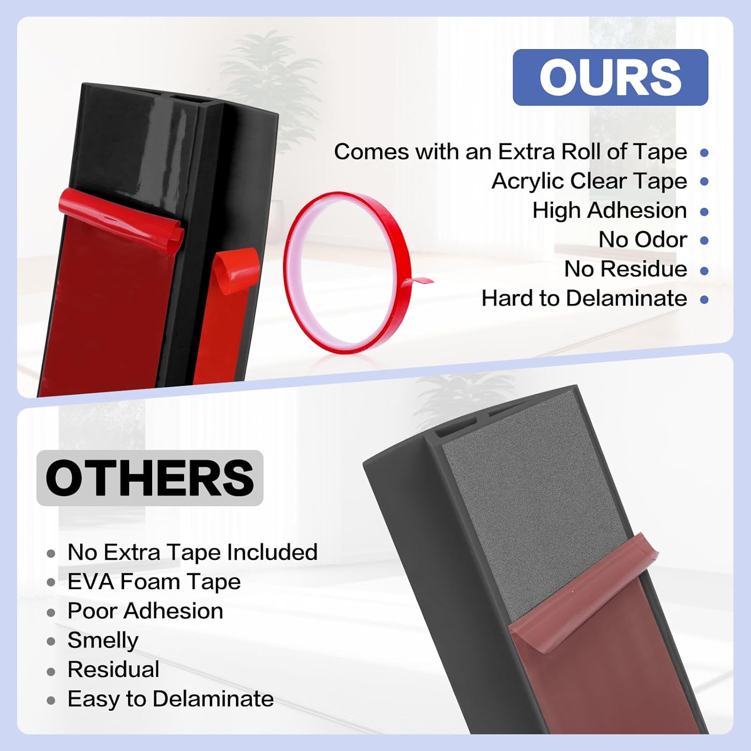 • Self-Adhesive Design: The door to tile transition strip reducer features an upgraded design with dual self-adhesive strips, providing a stronger, more secure hold. Installation is quick and simple—just peel and stick without the need for drilling, preserving your floors