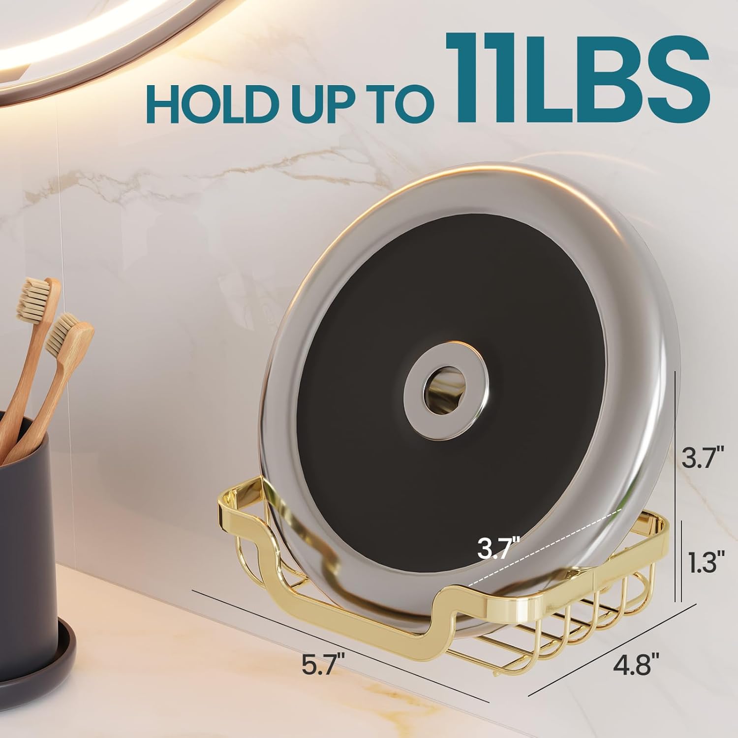 TAILI Soap Holder Bar Dish Suction Cup, Bar Shampoo Rack for Shower Wall, Draining Soap Saver Tray for Bathroom, Rustproof Stainless Steel Sponge Holder for Tub, Kitchen, Drill-Free, Gold