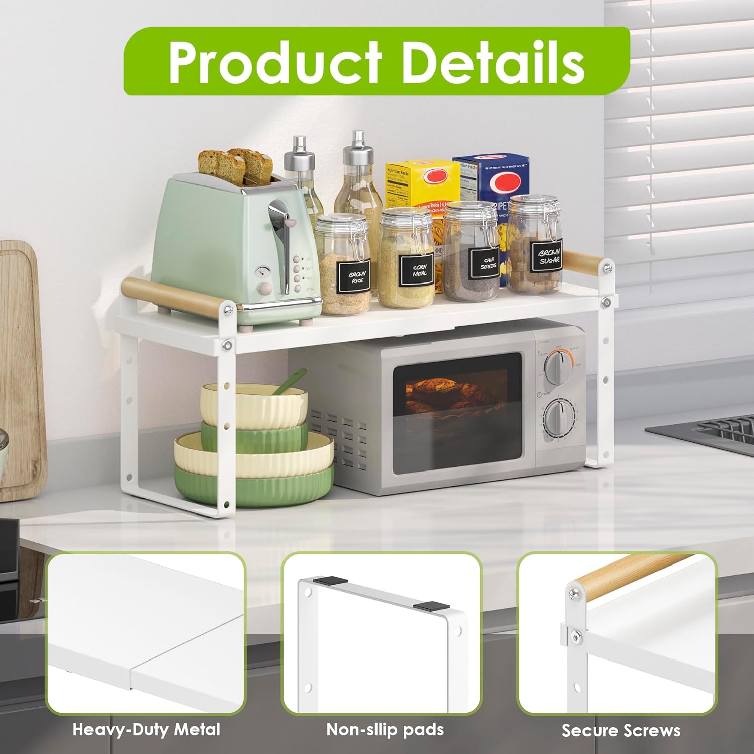 DOLALIKE Expandable kitchen Countertop Organizer, Stackable Cabinet Shelf Organizers, Space Saving Spice Rack Pantry Storage for Bathroom Office Organization (6.9''D*13-19.7''W*7.9''H, White)