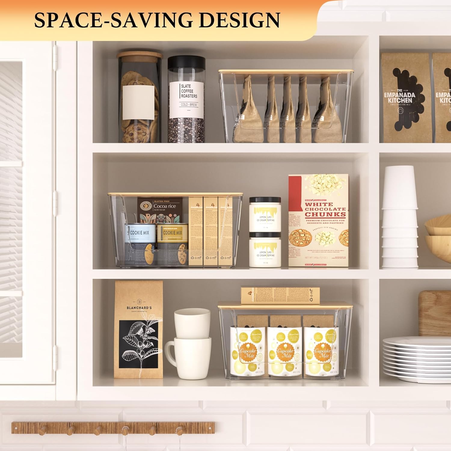 4-Pack Stackable Potato & Onion Storage Bins with Ventilated Design & Removable Dividers - Eco-Friendly Bamboo Vegetable Containers for Pantry, Kitchen Countertop - Garlic, Veggies, Produce Organizer