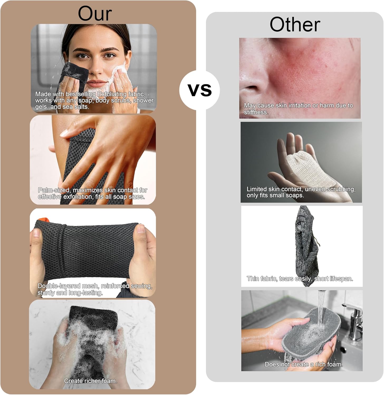 • Rich Lather Creation: The textured pouch quickly produces a rich, luxurious lather, similar to a loofah, enhancing your shower experience while conserving soap. The ergonomic palm-size design ensures ease of use.