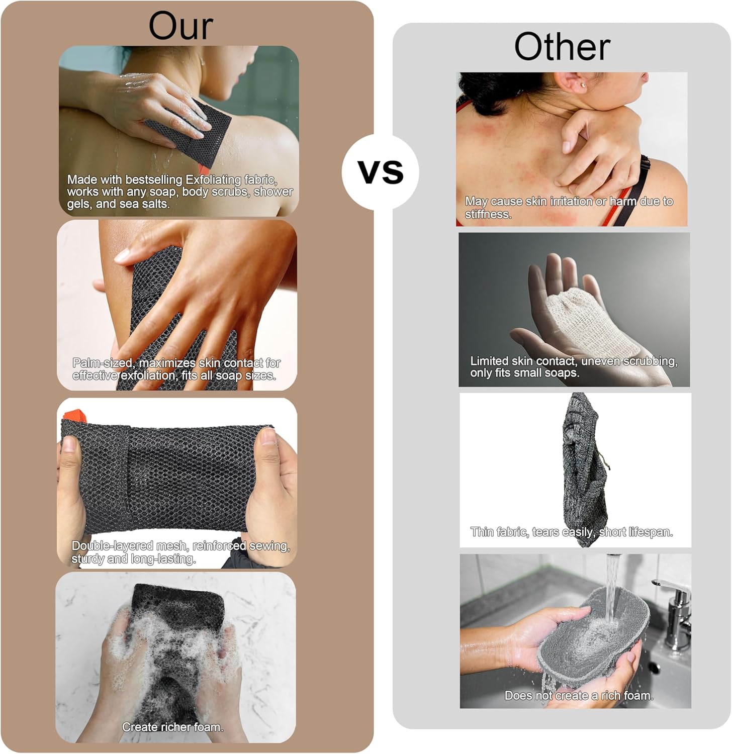 • Enhanced Exfoliation: Our soap bags transform your soap bar into a powerful exfoliating tool without harming your skin, removing dead skin and impurities for a refreshed, youthful appearance.
