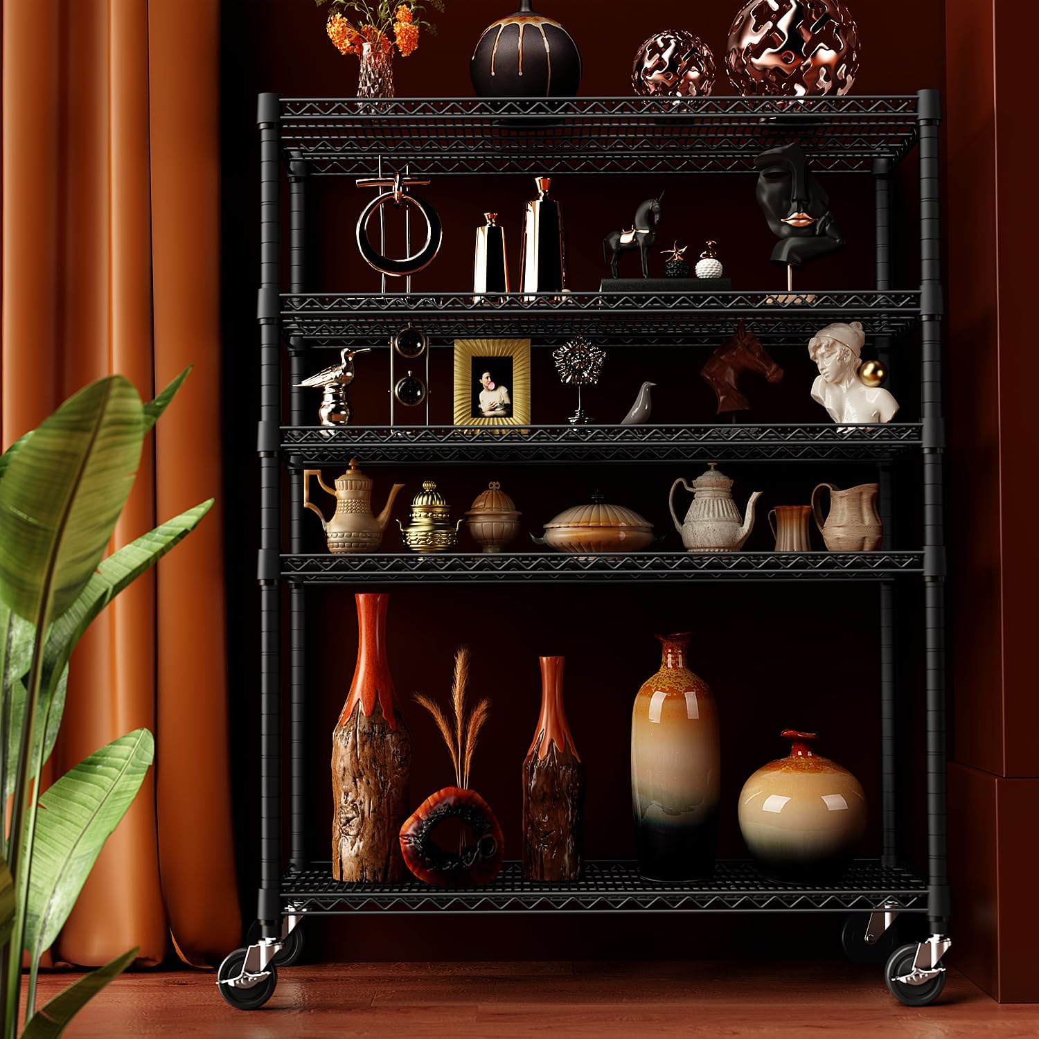 • COMMERCIAL GRADE HEAVY DUTY: Craft from study high-quality carbon steel and 25.4mm metal rods, each shelving unit has a maximum capacity of 660LBs on leveling feet, with a total capacity of 2640 LBs (Approximately 530 LBs on wheels.)