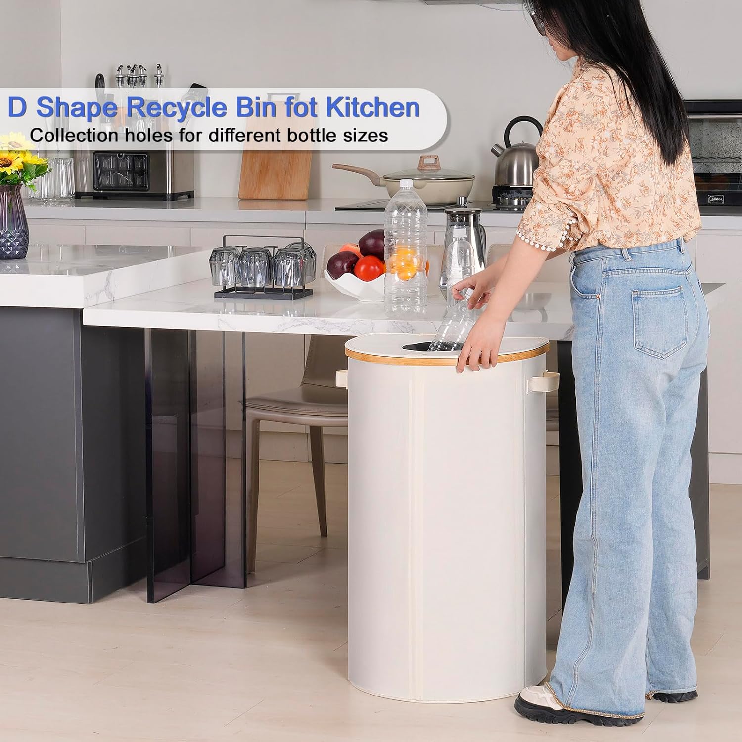 • 【Recycle bin with Hole】This recycle bin has a lid with a round silicone hole on the top, so you don't need to open the lid, just drop the bottle through the silicone hole and it will close automatically, which effectively helps to protect you from odors.