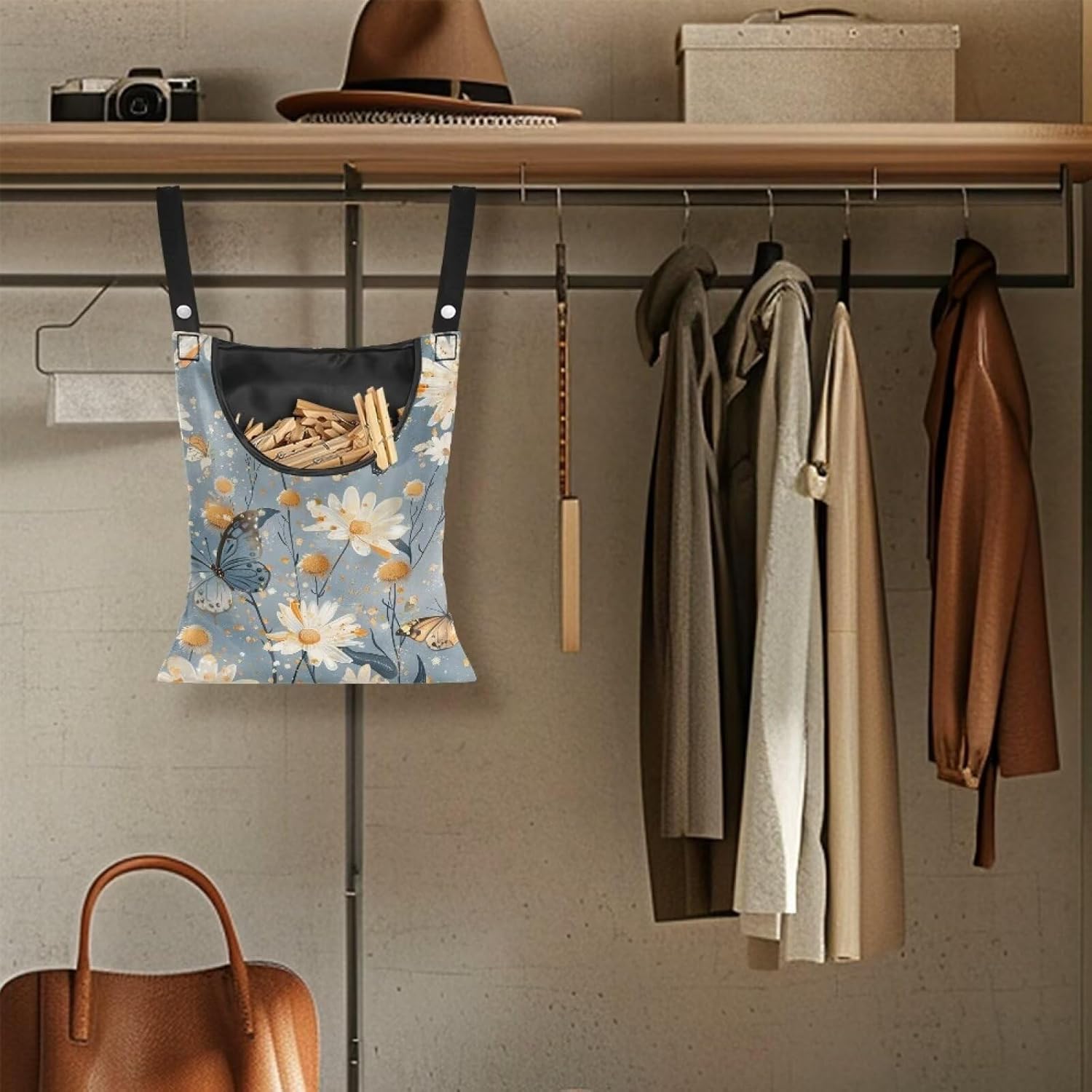 Butterfly Clothespin Bag with Hanging Rope 14.5 x 12 Inch Summer Waterproof Laundry Clothes Pin Holder Clothespin Storage Organizer with Large Opening for Home Outdoor
