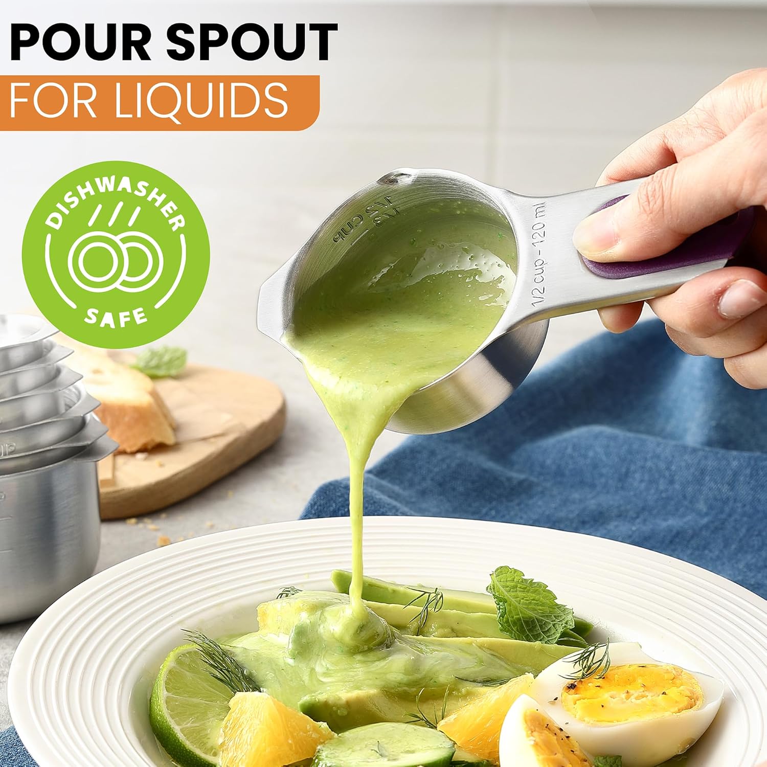 • Complete Set Of Cups With All The Common Sizes You Need - You'll be able to make almost anything with the included sizes - 1/8 cup, 1/4 cup, 1/3 cup, 1/2 cup, 2/3 cup, 3/4 cup, and 1 cup.