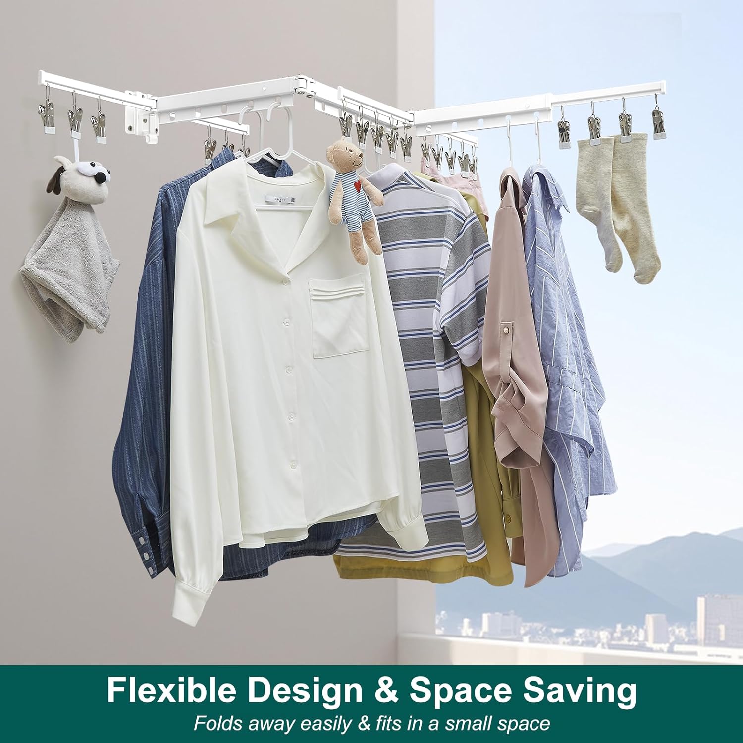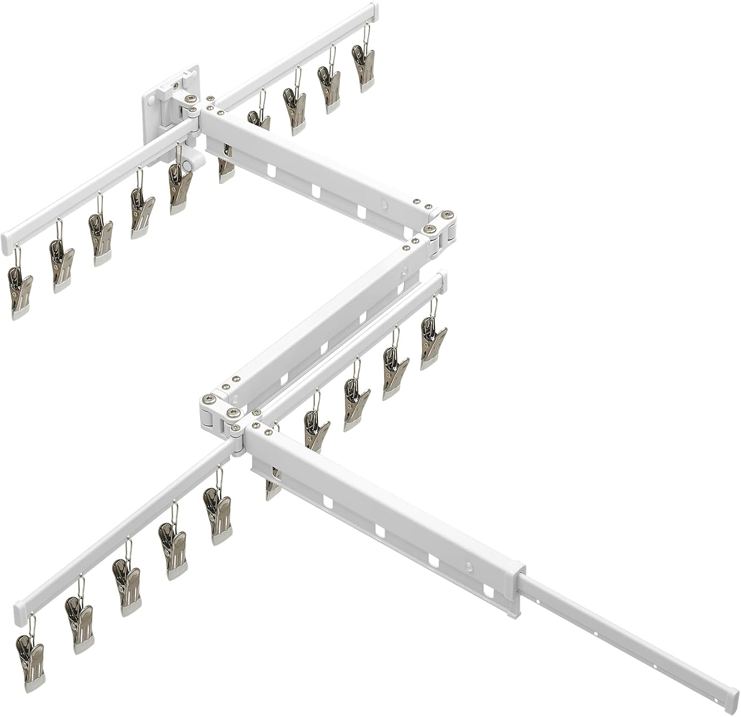 • Versatile Applications: Comes with 15 hanging holes for larger garments and 20 removable clips for smaller garments like socks, so you can hang tons of clothes at the same time. Its wall-mounted nature allows for installation anywhere.