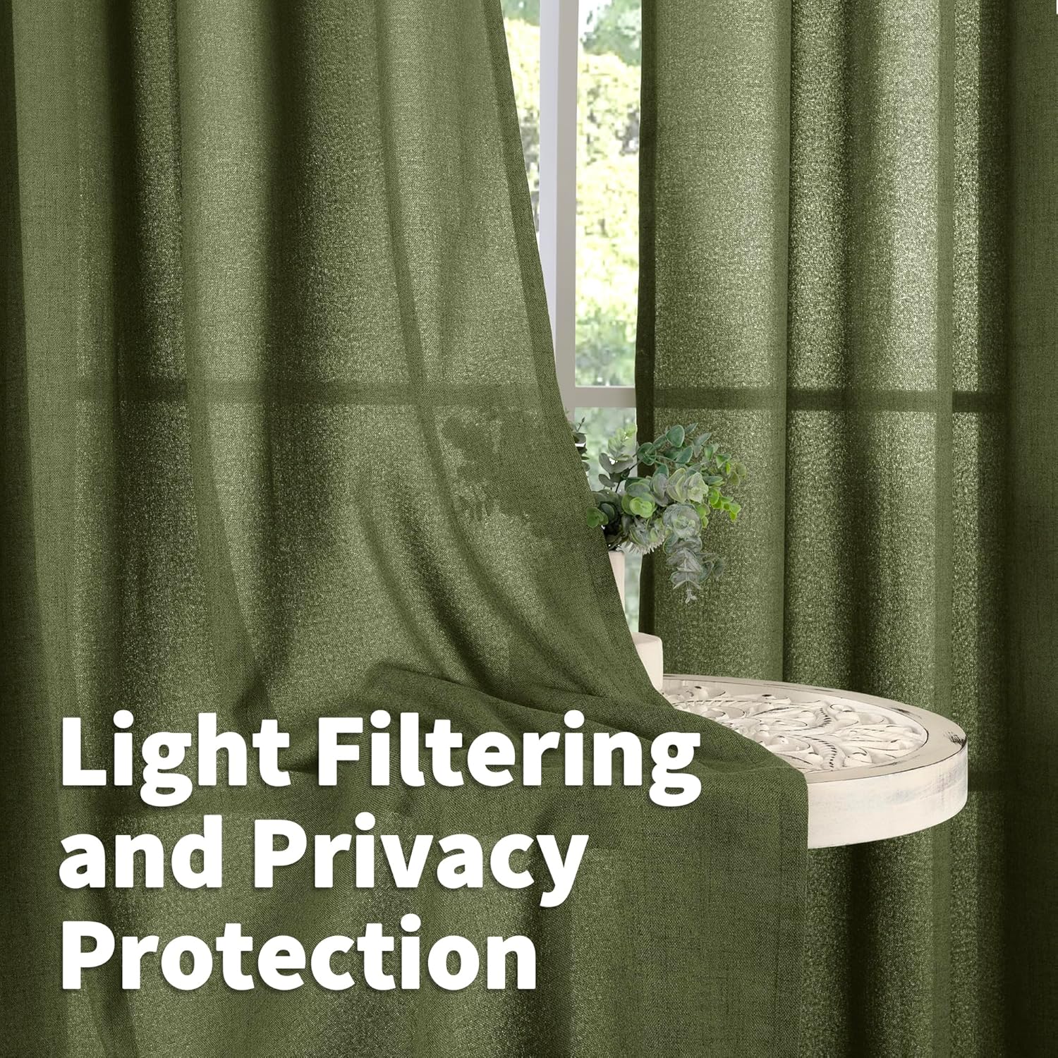 • Privacy Protection: Different from ordinary sheer drapes, our linen curtains are woven with a firmer and thicker texture that filters harsh light, while nice thickness helps provide privacy. Subtly balancing light and privacy that allow you to enjoy your leisure time.