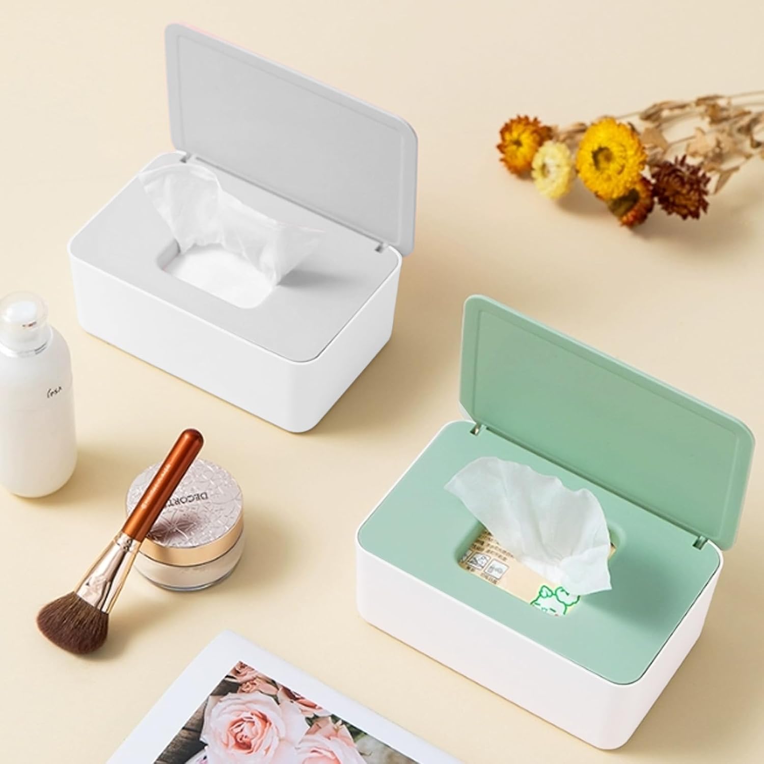 • 【Widely Use】The wipes storage container is suitable for kitchen, bedroom, bathroom, office, car, etc. Not only can keep wet wipes but also face wipes, flushable toilet wipes, or makeup remover wipes in these adorable reusable dispensers.