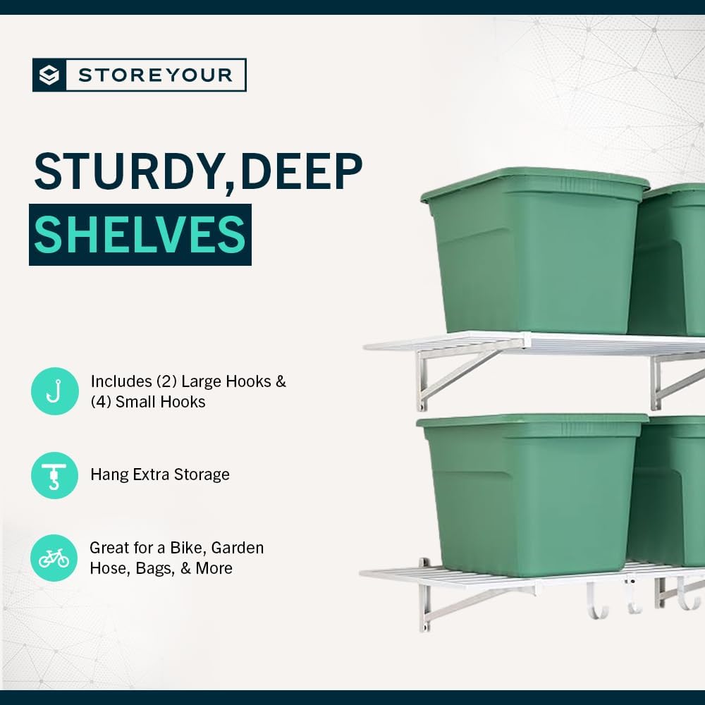 • INCLUDES STORAGE HOOKS – Comes with 2 large and 4 small garage hooks for added hanging storage under each wire shelf. Use the hooks for cords, garden tools, bags, or garage wall organizer systems. Maximize vertical space while keeping frequently used tools within reach.